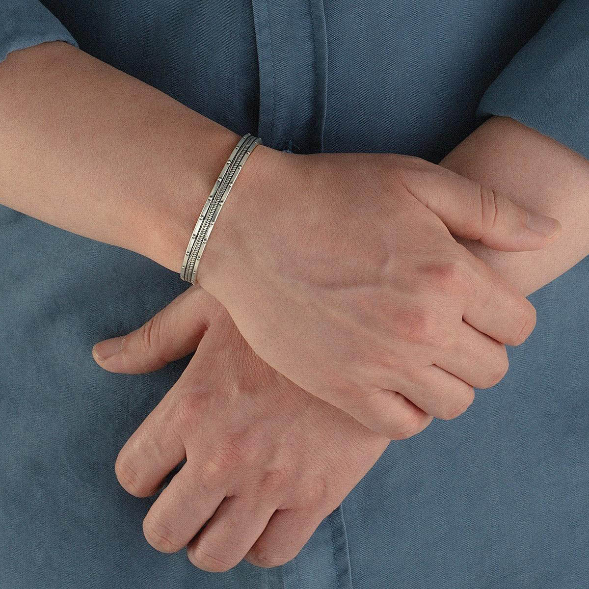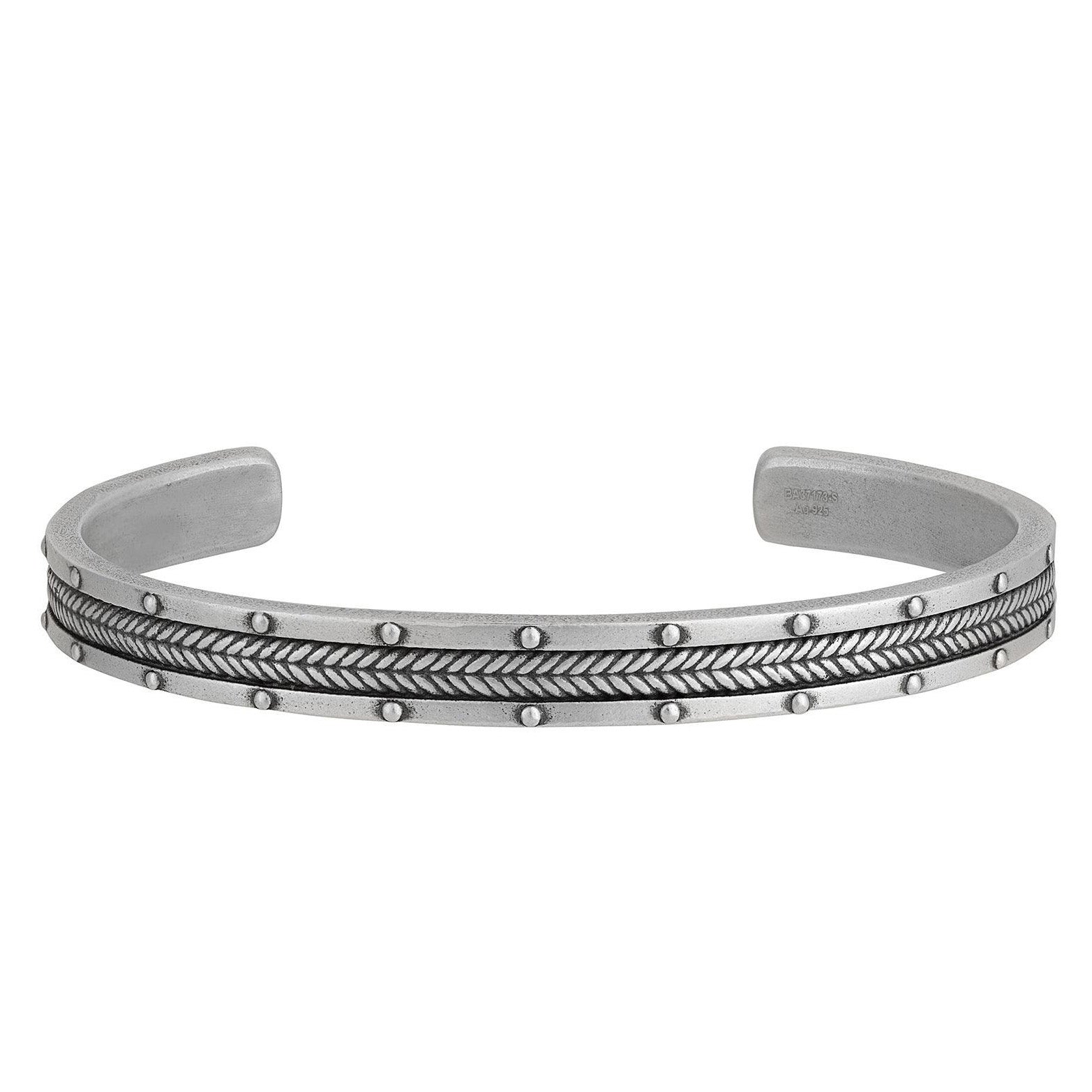 Cuff bracelet in sterling silver with rivet and chevron accents