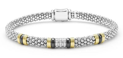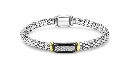Two-Tone Black Ceramic Station Diamond Bracelet | 6mm