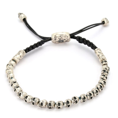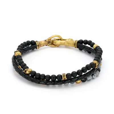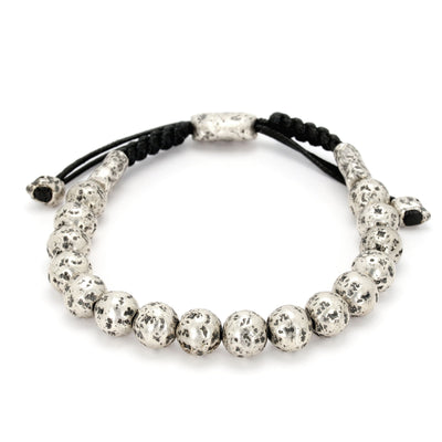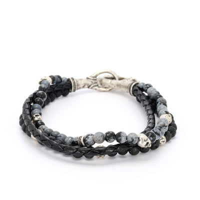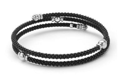 Black Ceramic Beaded Silver Station Double Wrap Bracelet