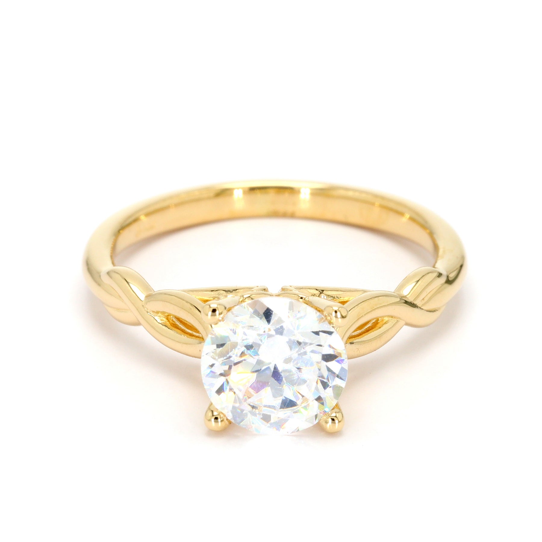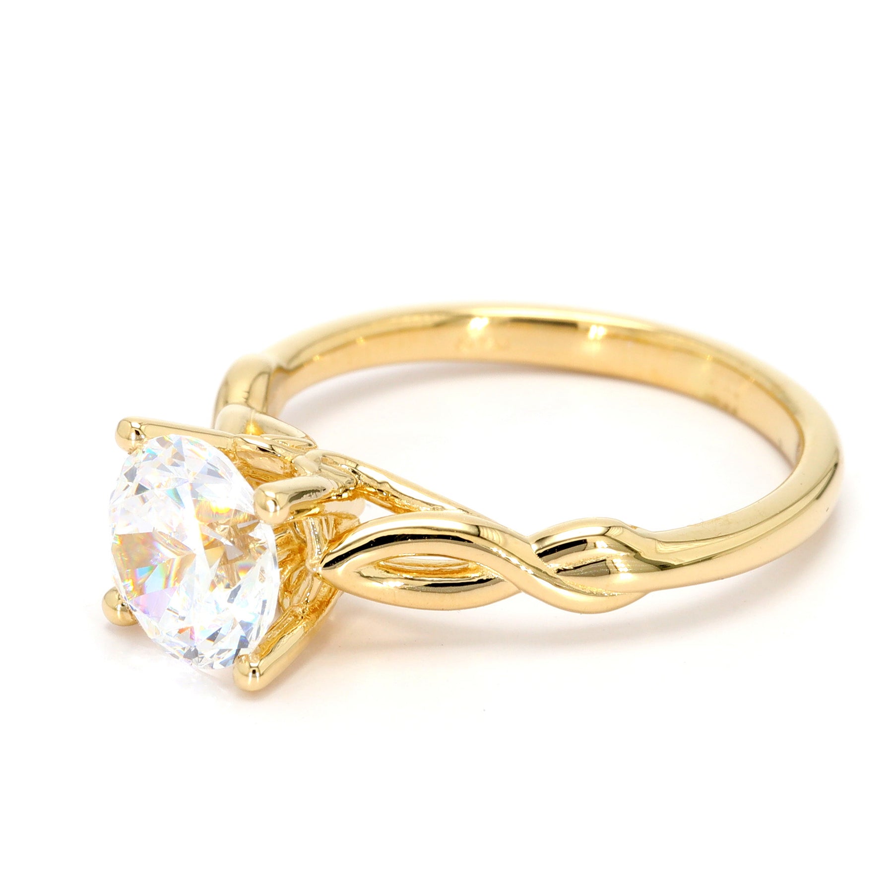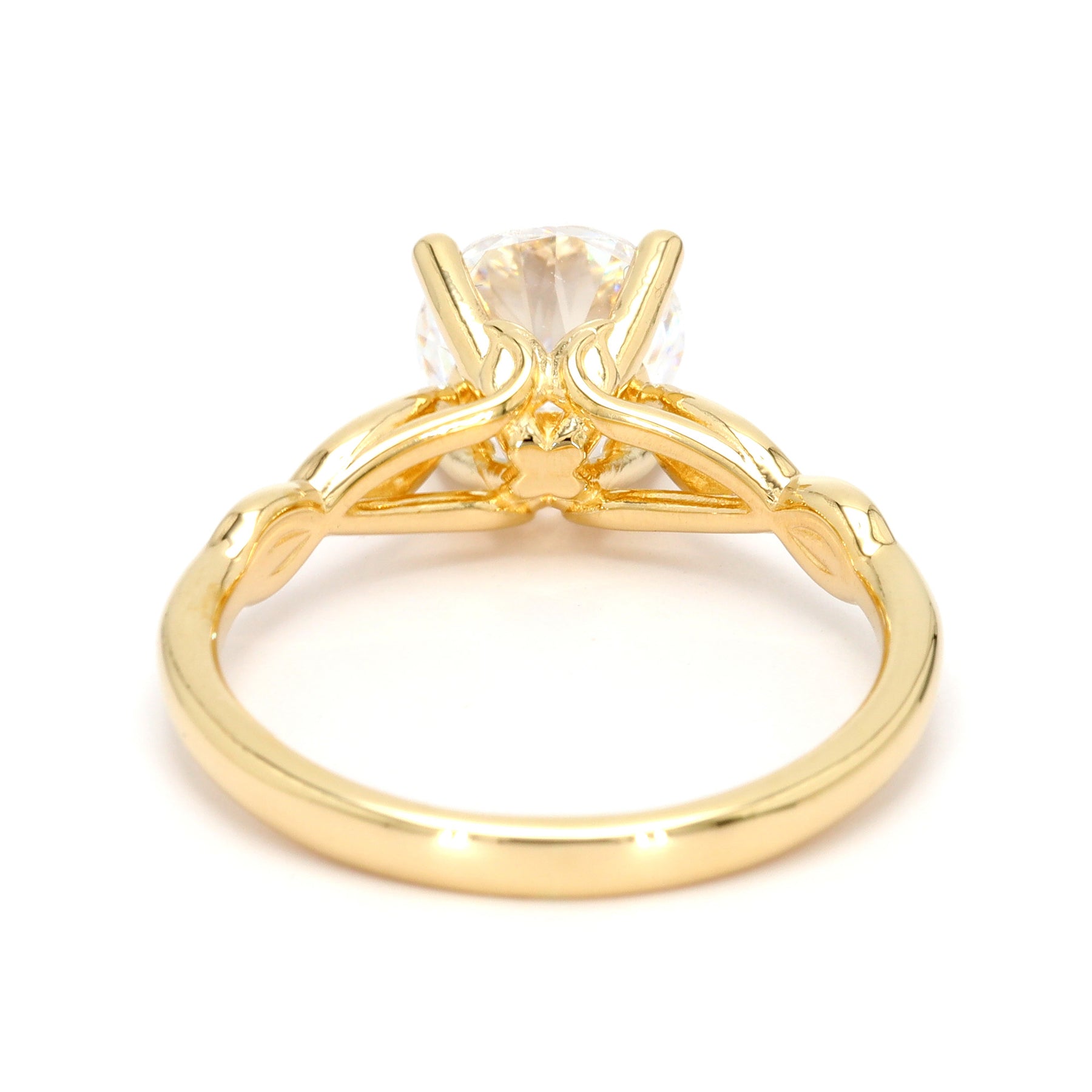 Solitaire Engagement Ring Mounting in 14k yellow gold with a 4-prong setting designed to fit a 1.5-2ct round cut diamond (stone not included).