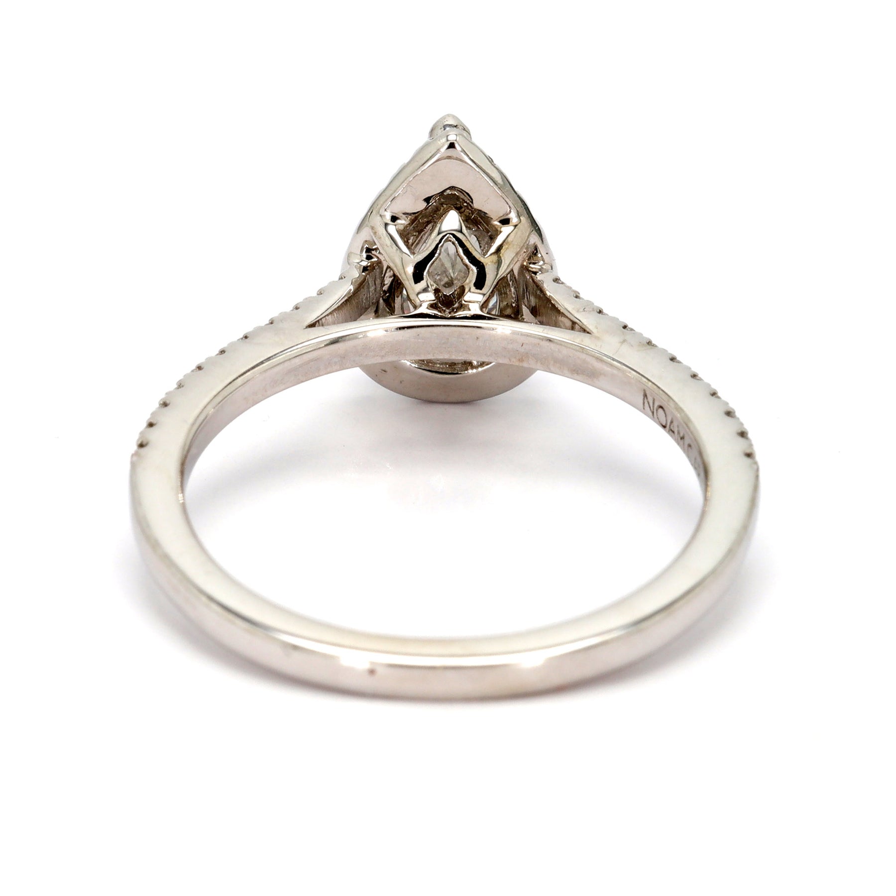 Halo Engagement Ring in 14k white gold, featuring a 1.07 carat E SI1 pear cut Diamond (GIA#1232770621), with 43 accent Diamonds totaling 0.20 carats.