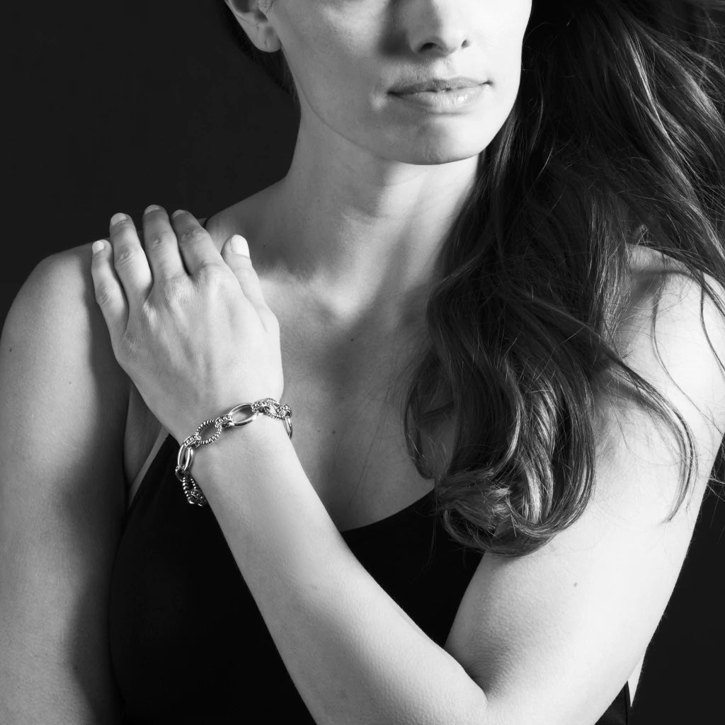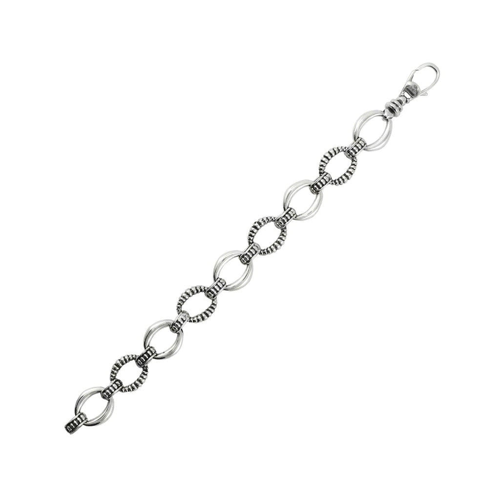 Smooth and fluted links of polished sterling silver form this versatile bracelet. Finished with a lobster clasp bearing the LAGOS crest. This Bracelet is 15mm wide and 7.75 inches long