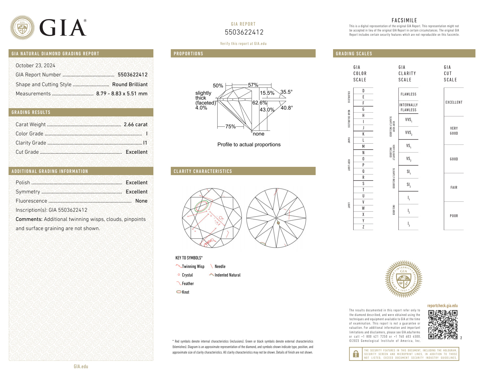 Diamond Bar 2.66ct RBC I I1 GIA#5503622412