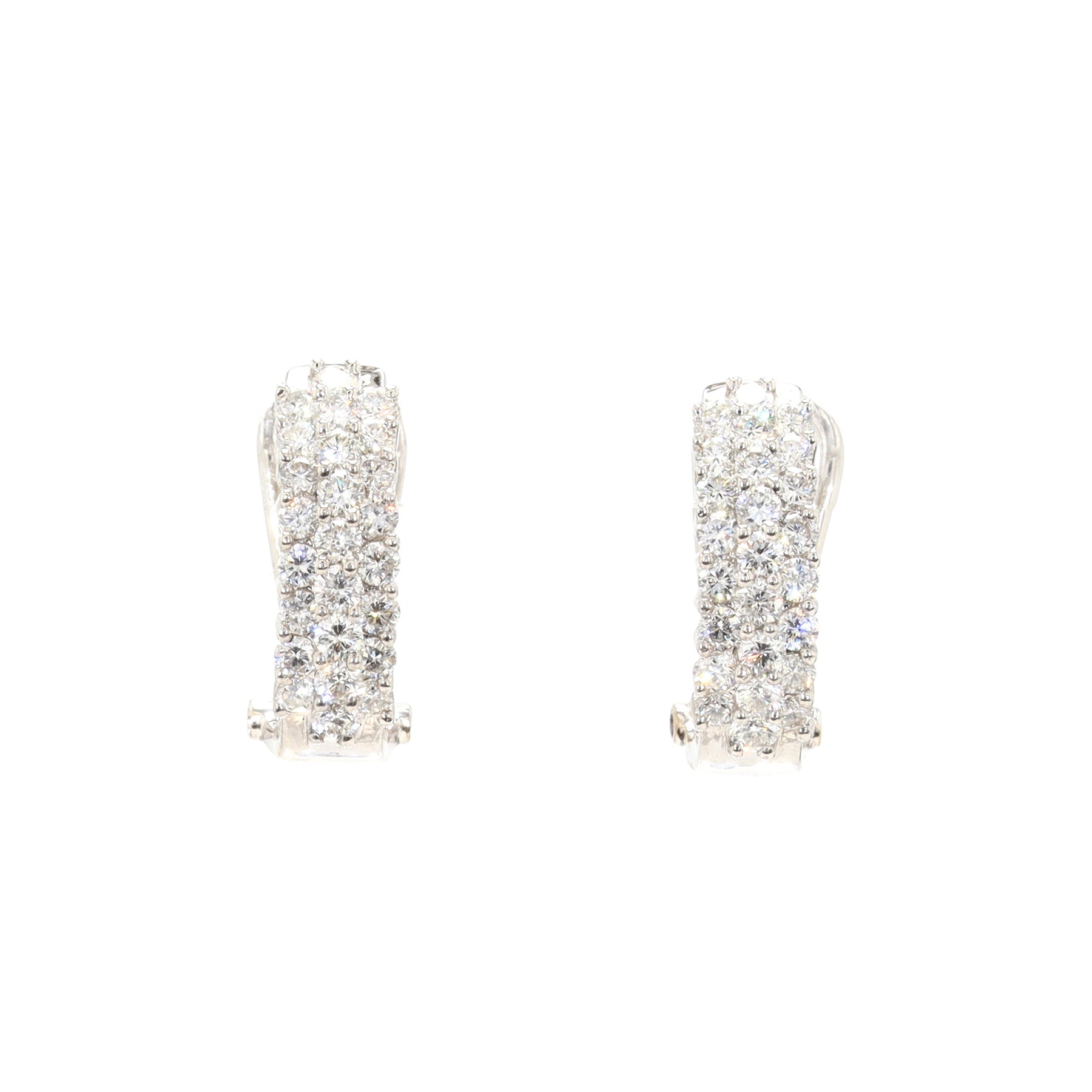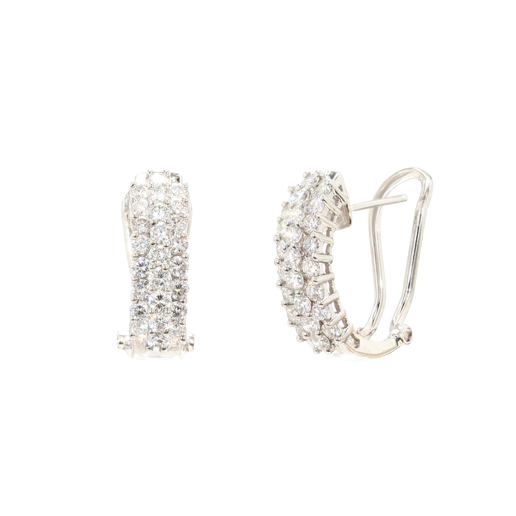 Omega-back Earrings in 18-karat white gold featuring 52 round brilliant diamonds with a total weight of approximately 1.75 carats.