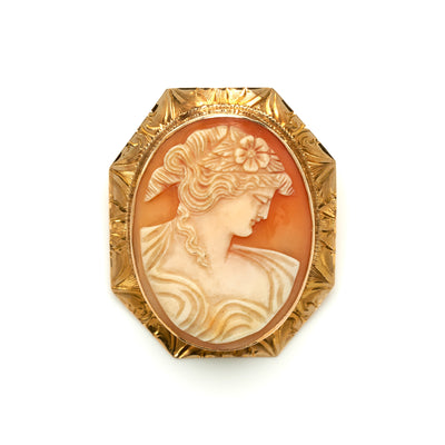 Art Deco Shell Cameo Convertible Pin-Pendant