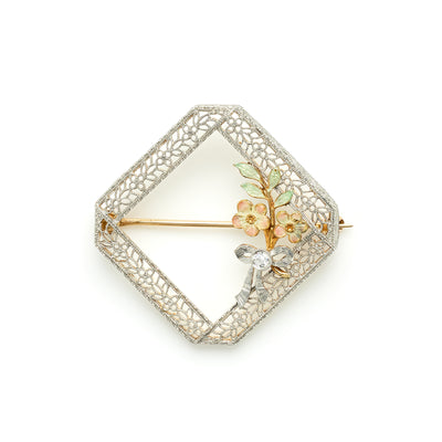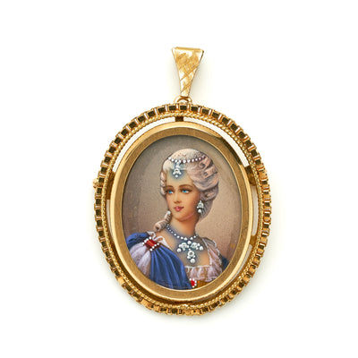 "Corletto" Painted Portrait Diamond Convertible Pin-Pendant, c1960