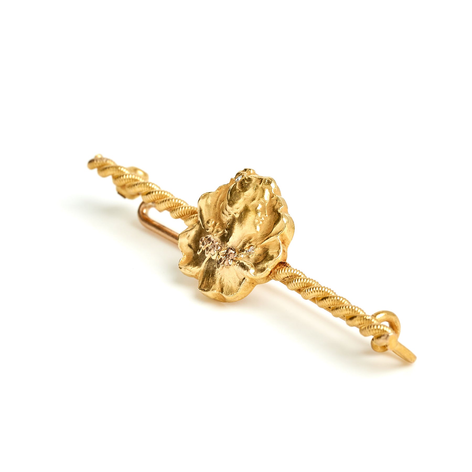 Art Nouveau pin in 14 karat yellow gold, featuring four rose cut Diamonds.