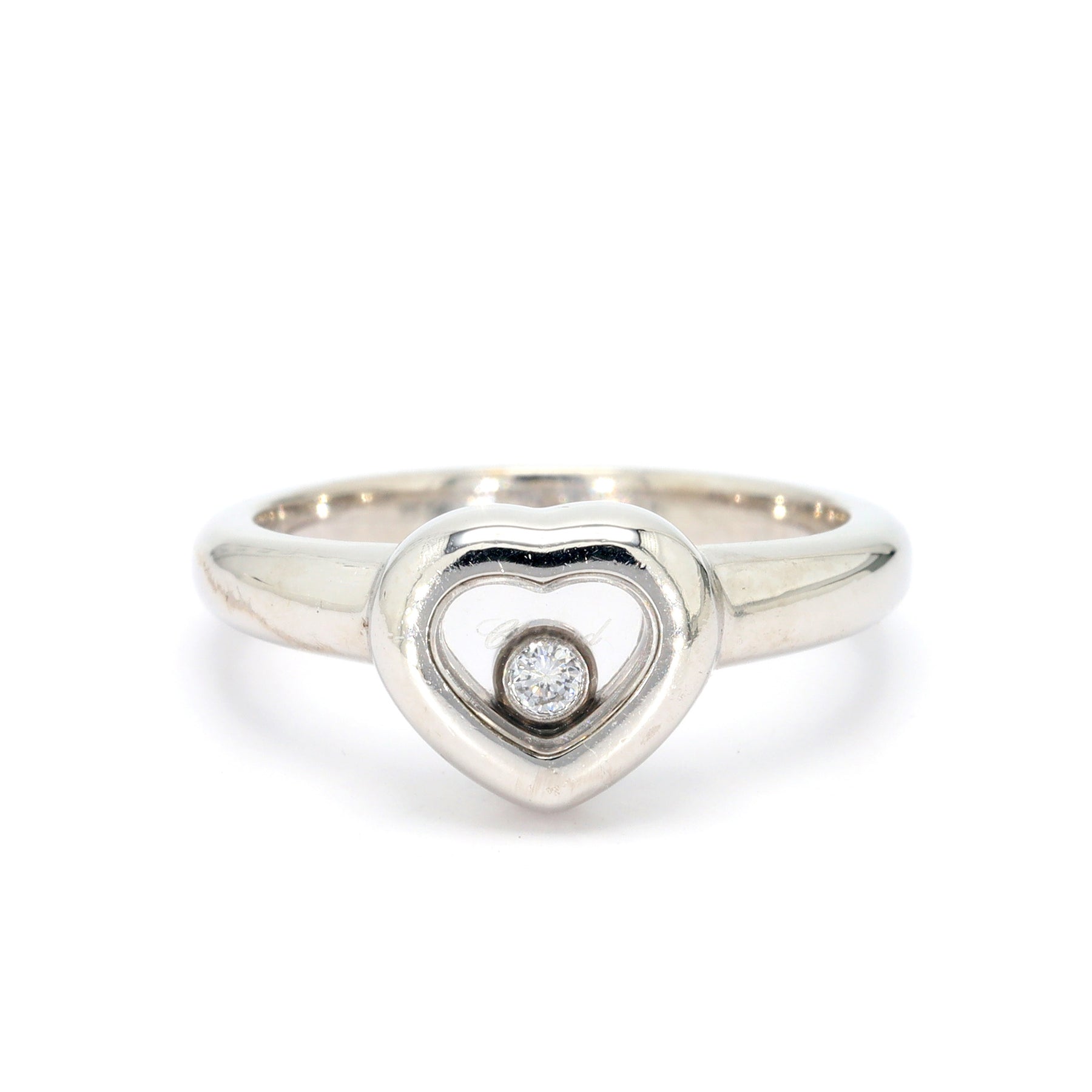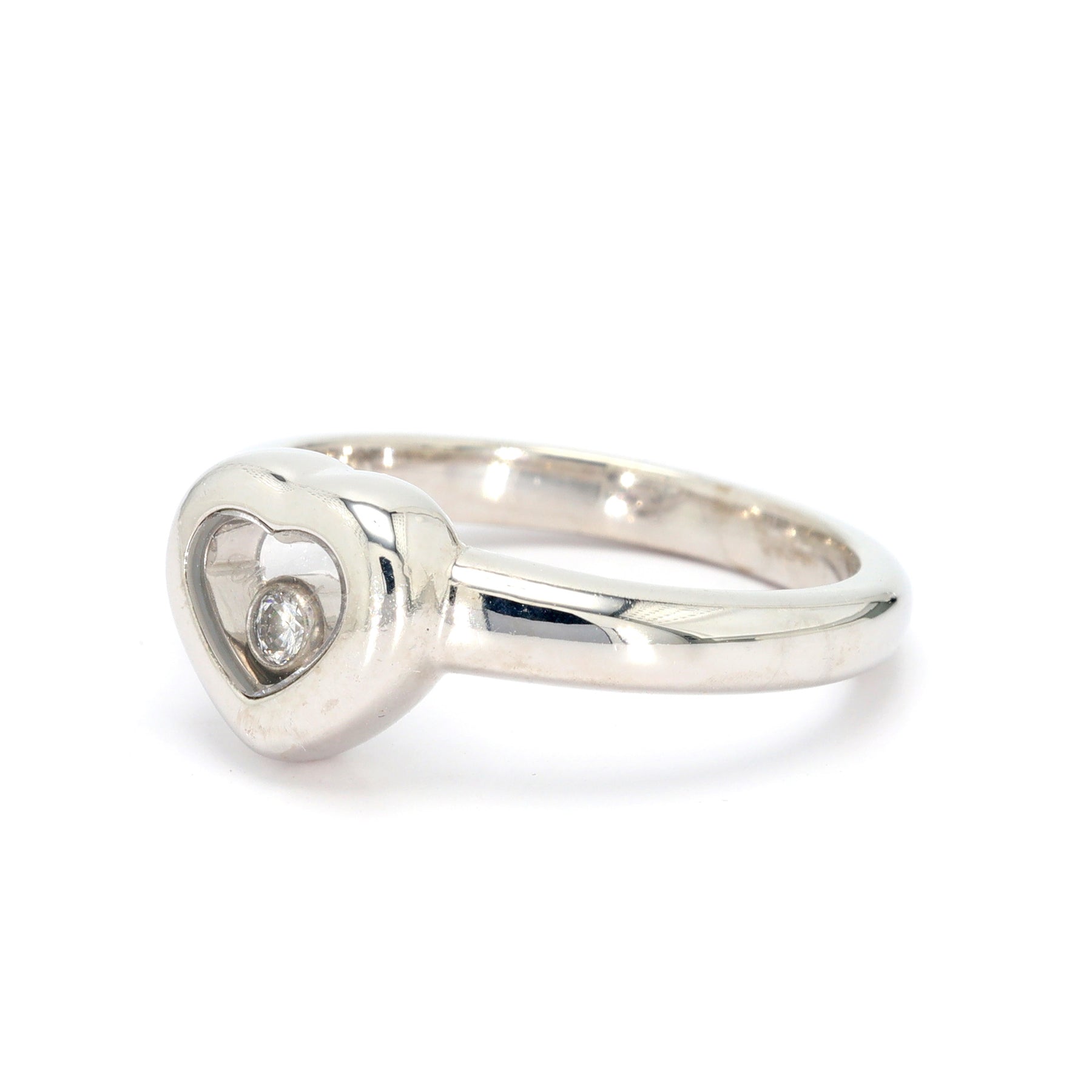 "Chopard" Happy Diamonds ring in 18-karat white gold, size 4, featuring 1 diamond (G, VS) weighing approximately 0.03 carats.