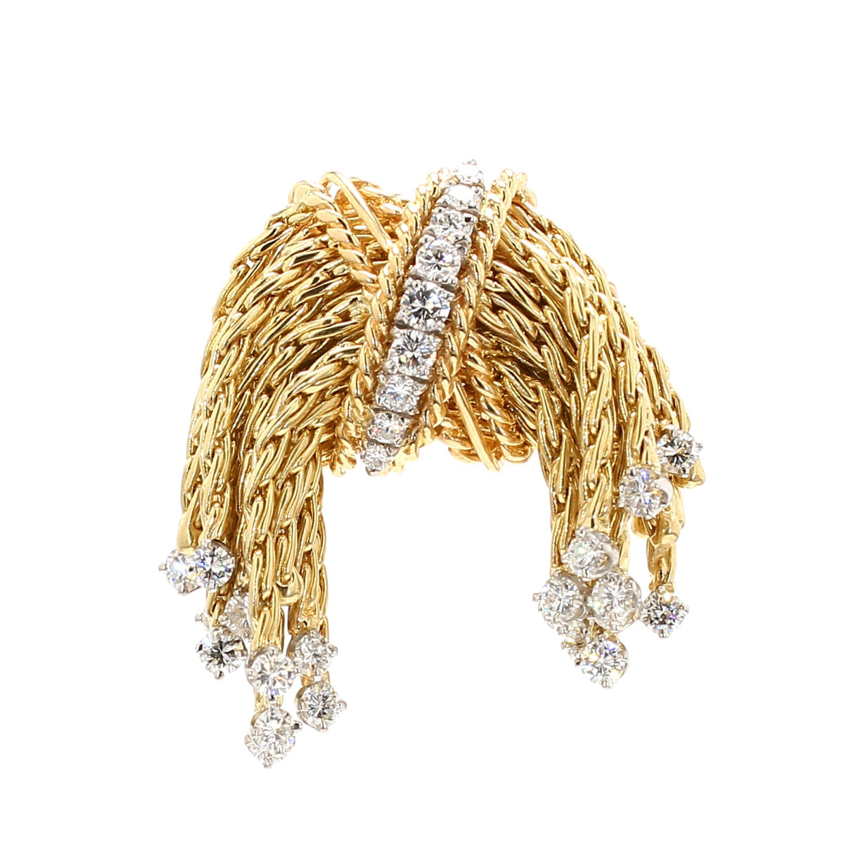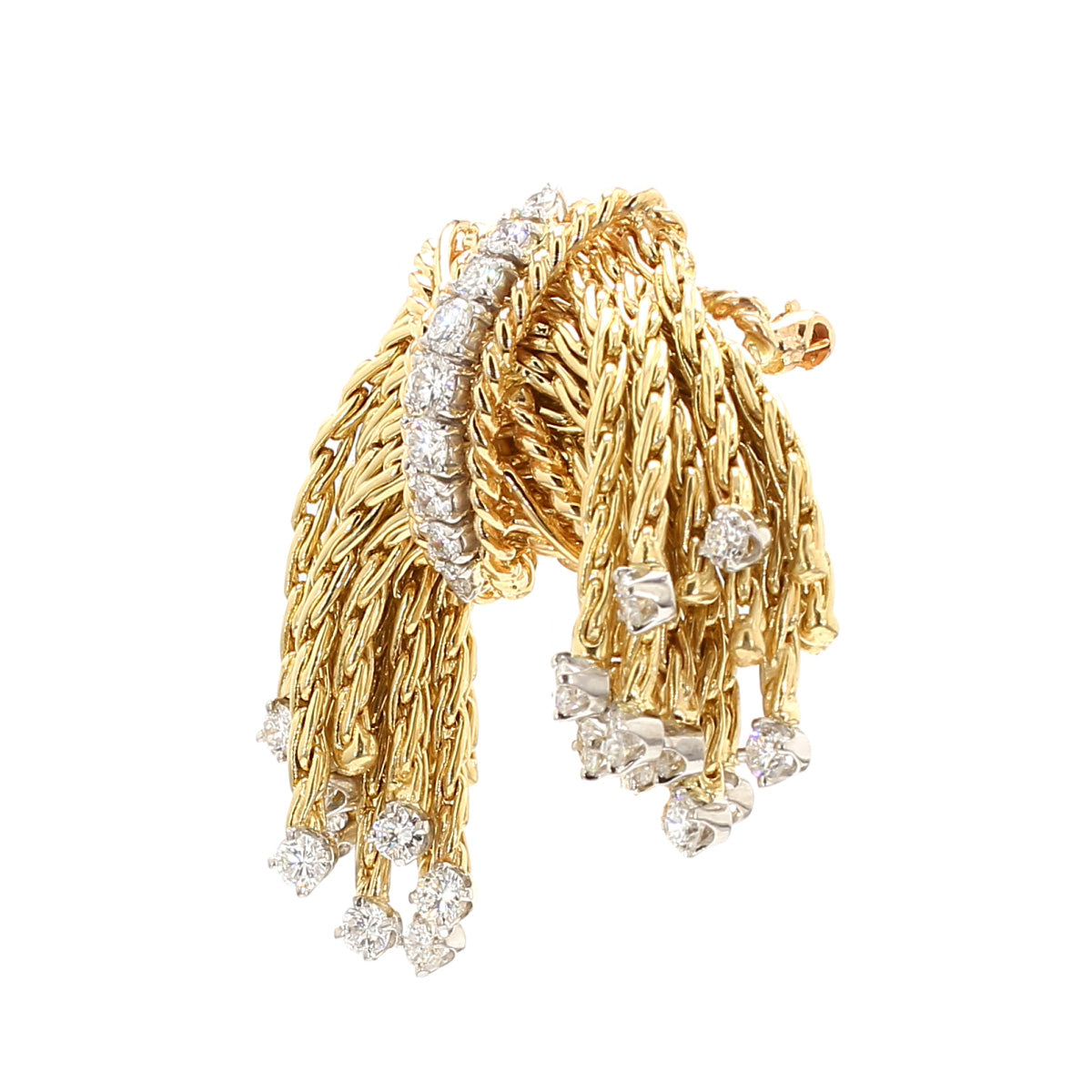 "David Friendman & Sons" tassel pin in platinum and 14-karat yellow gold featuring 29 diamonds with a combined weight of approximately 2.10 carats.