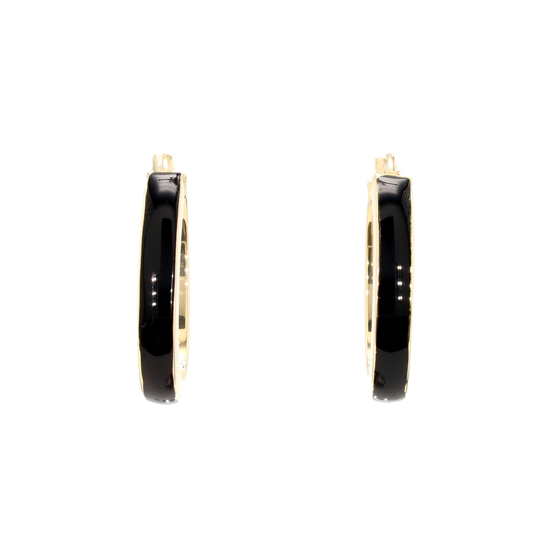 Gold Hoops with Black Enamel