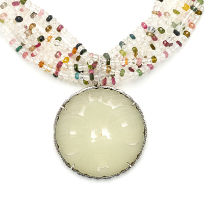 Double Strand Pearl Necklace with Floral Diamond Clasp