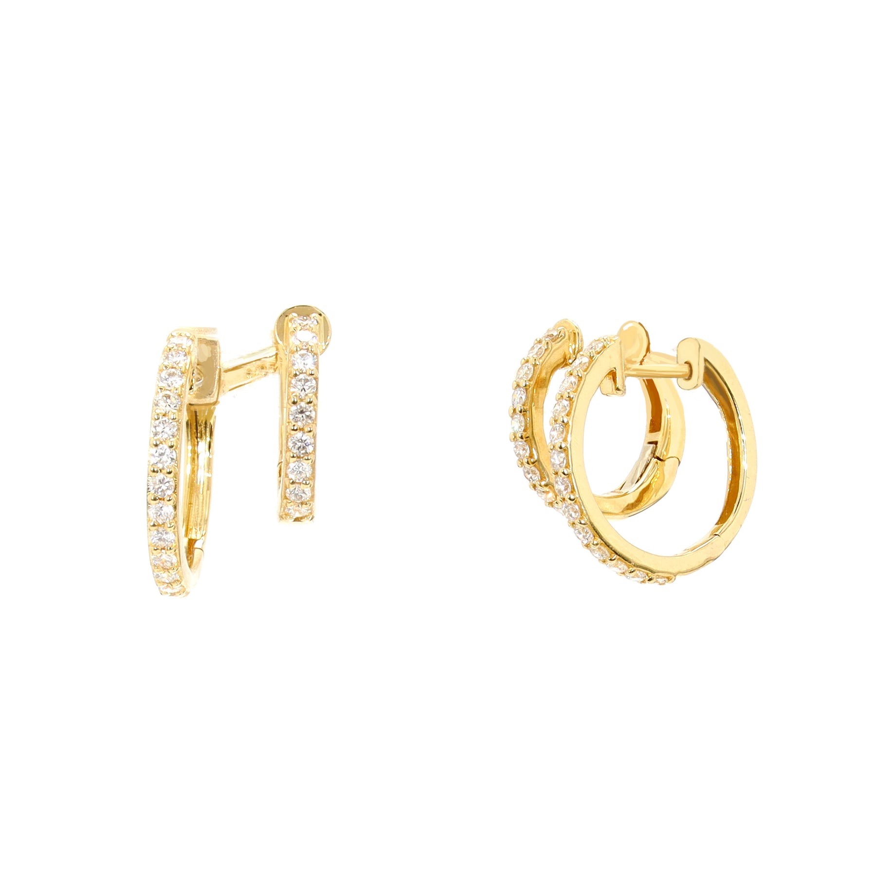 Hinged double-hoop earrings in 14-karat yellow gold featuring 21 diamonds (G/H, SI) with a combined weight of 0.48 carats.