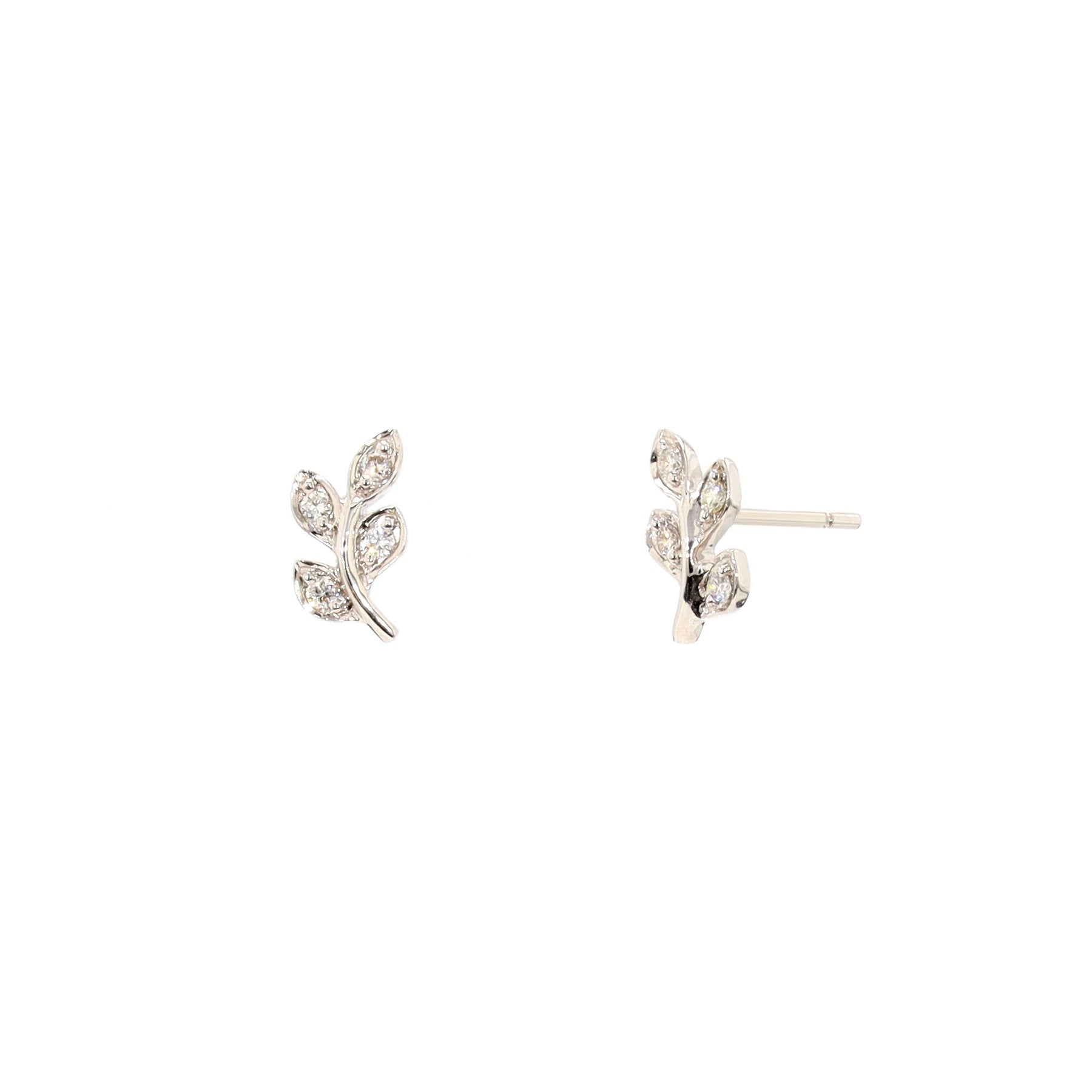 Floral stud earrings in 14-karat white gold featuring 8 diamonds (G/H, SI) with a combined weight of 0.12 carats.