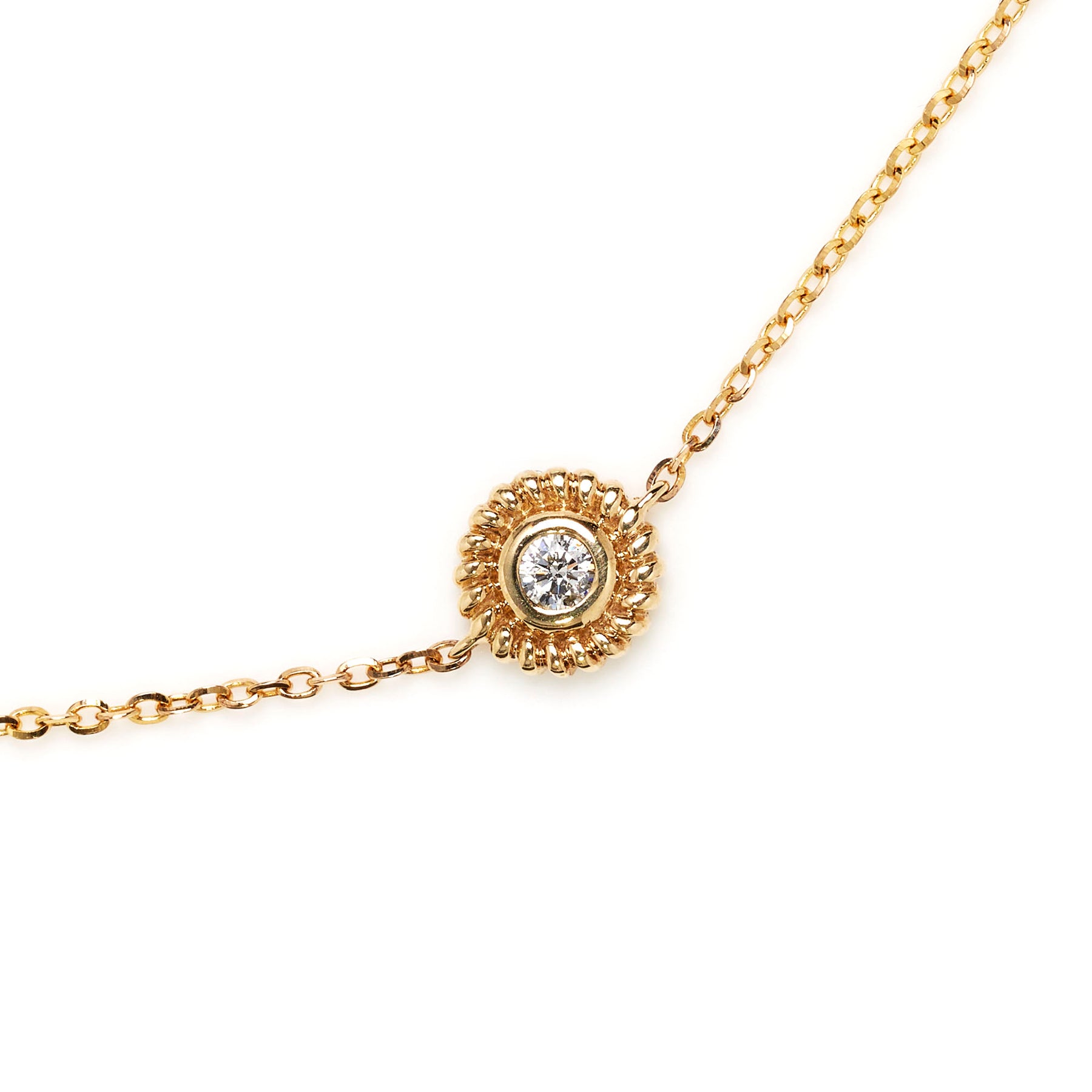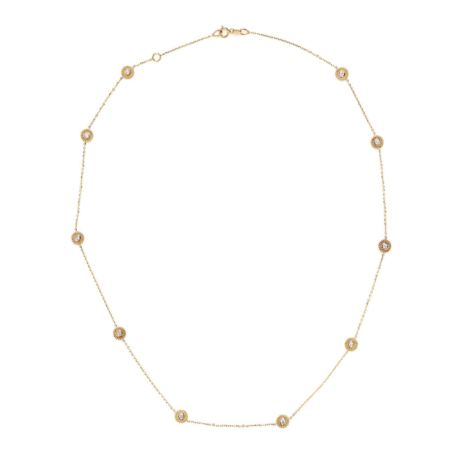 Station necklace in 14-karat yellow gold measuring 18" in length featuring 10 diamonds (G/H, SI) with a combined weight of 0.33 carats.