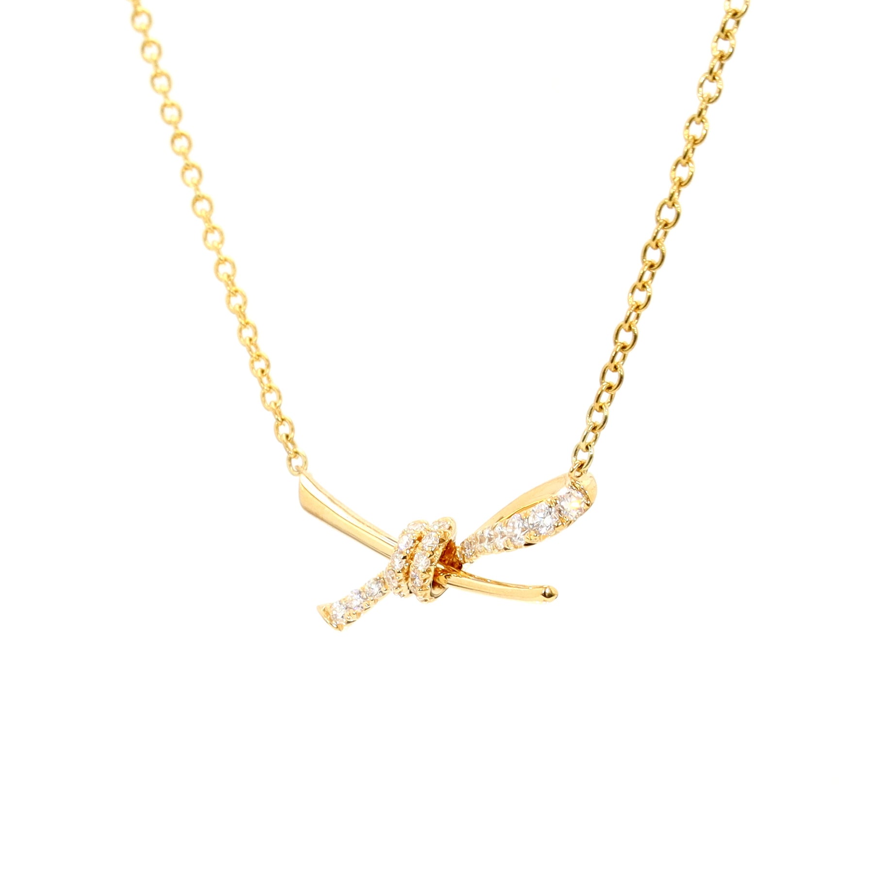 Twist fixed pendant necklace in 18-karat yellow gold, featuring 22 diamonds (H/I I1) with a combined weight of 0.25 carats, on an adjustable 18 inch chain.