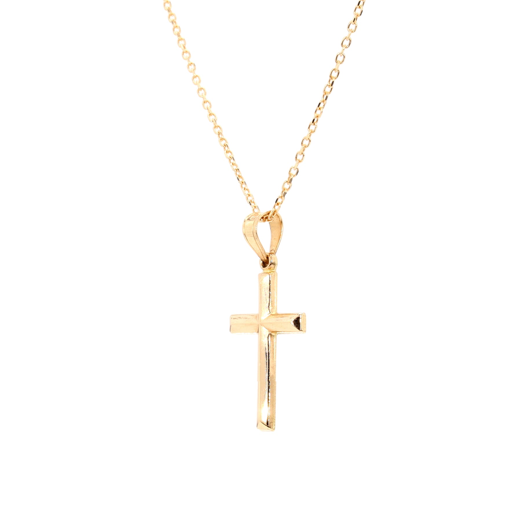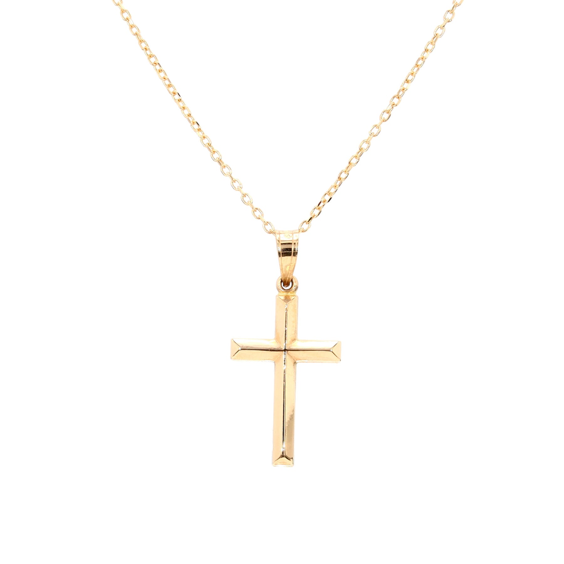 Cross pendant in 14 karat yellow gold, on a 16 inch chain.