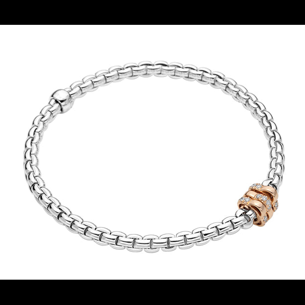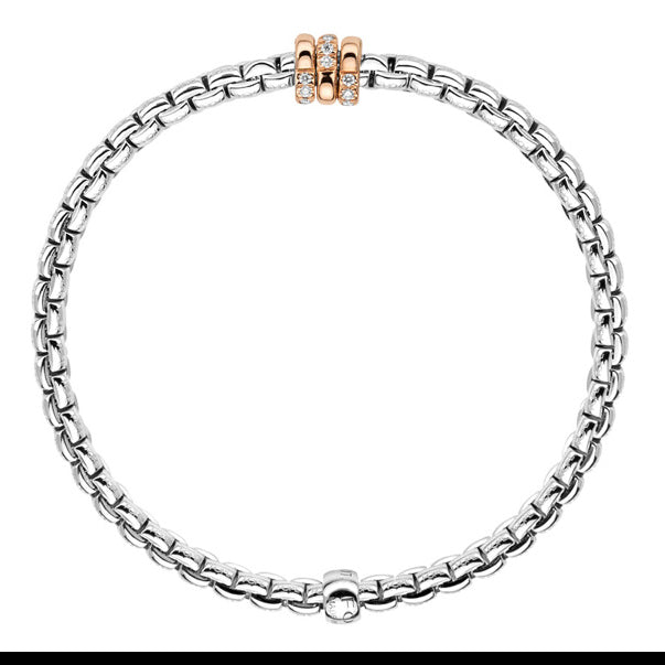 Flexible bracelet made entirely of 18 carat white gold with F/G VS 0.16ct diamonds.