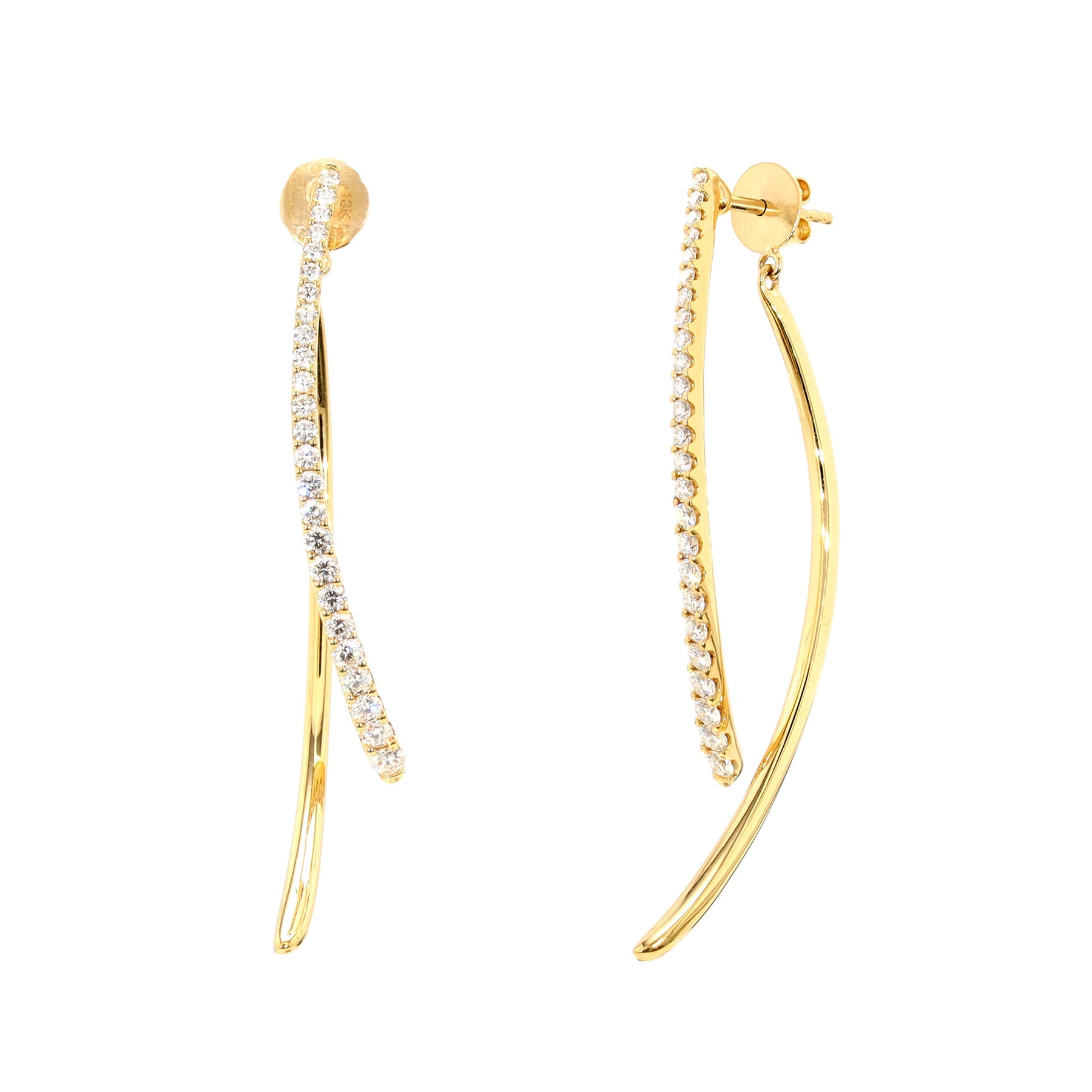 Dangle earrings in 18-karat yellow gold featuring 50 diamonds (G/H, SI) with a combined weight of approximately 1.00 carat.