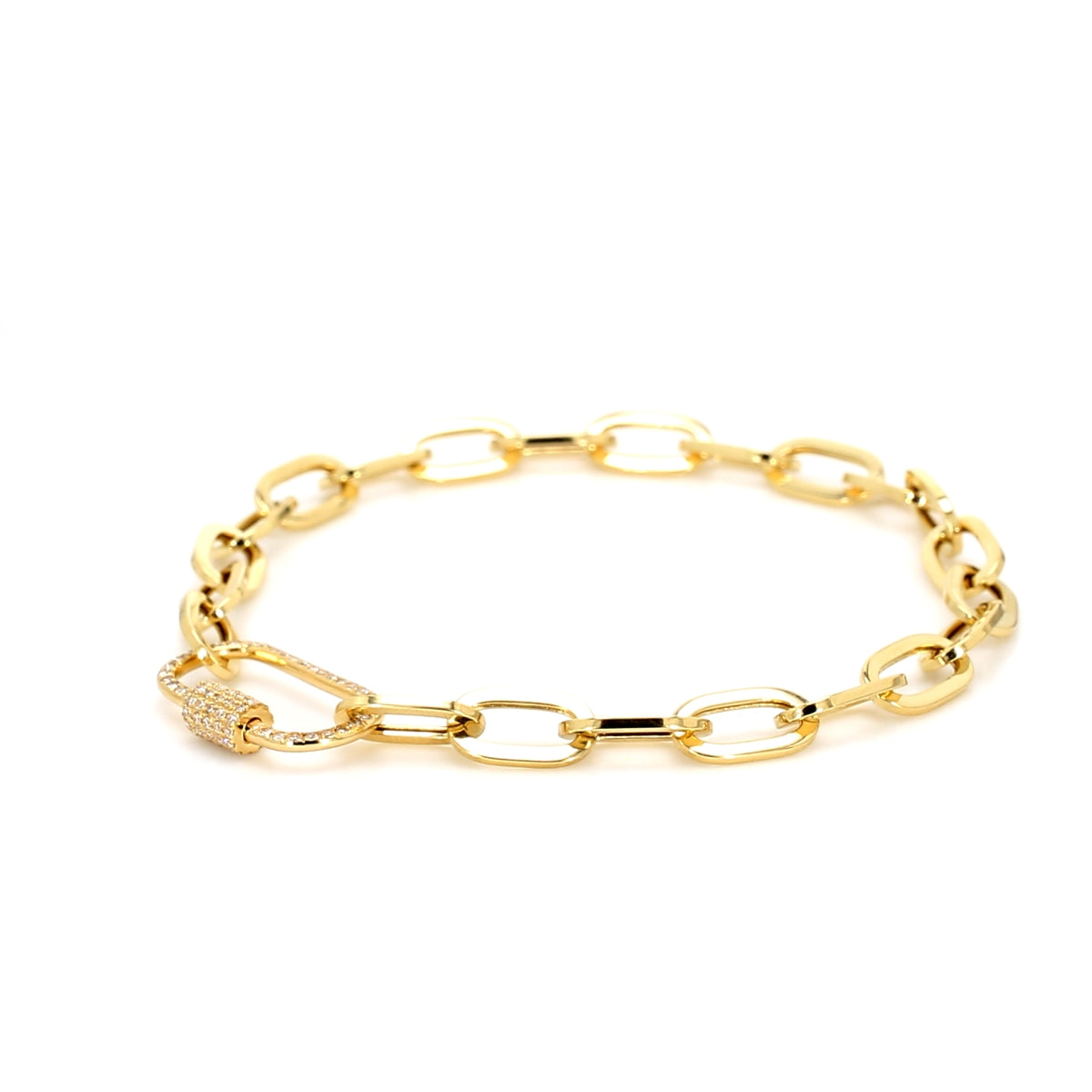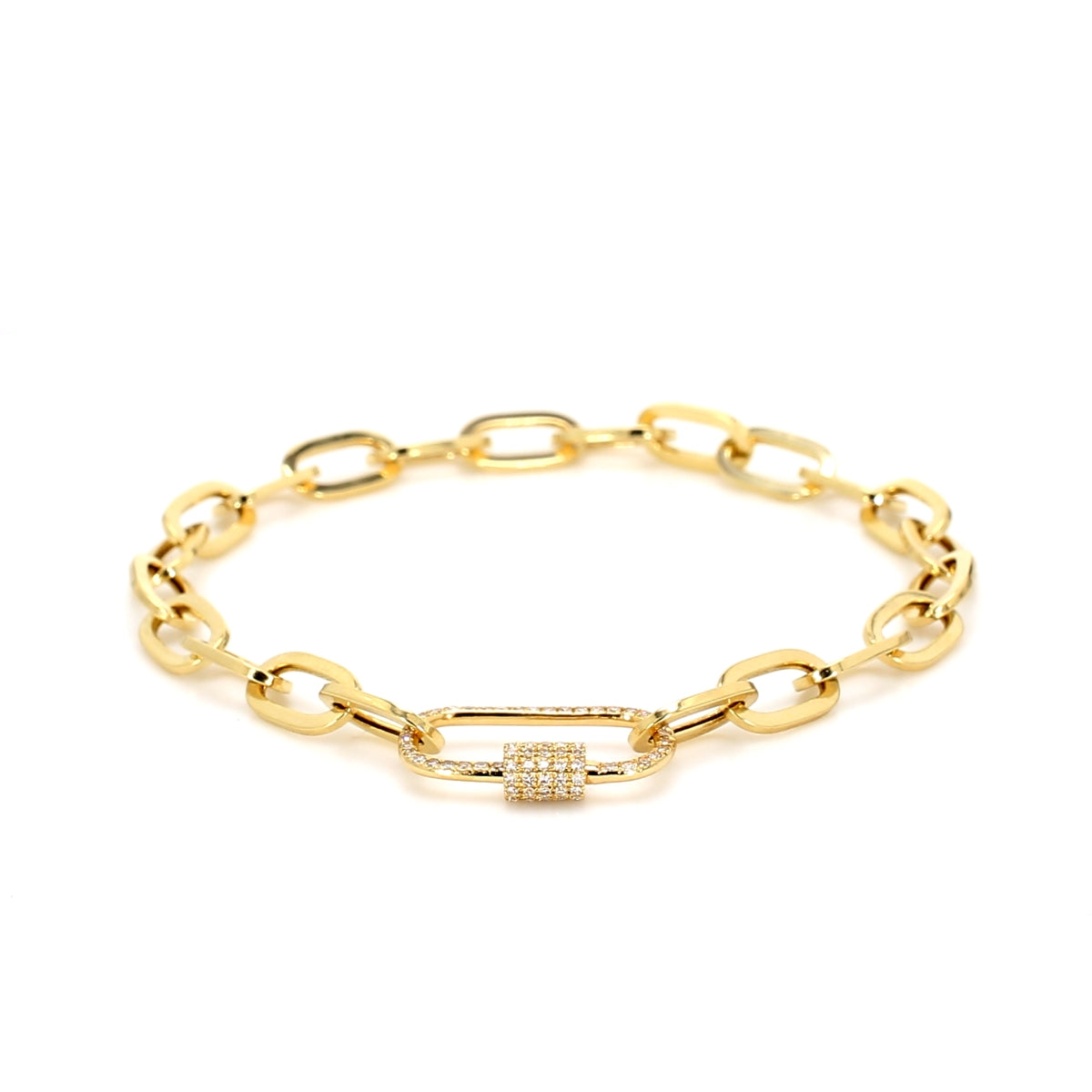 Diamond Oval Link Bracelet In 14 Karat Yellow Gold. This Contemporary 7in Bracelet Is Set In A Prong Setting With 95 Round Brilliant Cut G/H Clarity: SI Diamonds, With A Combined Total Weight Of 0.23TWT.