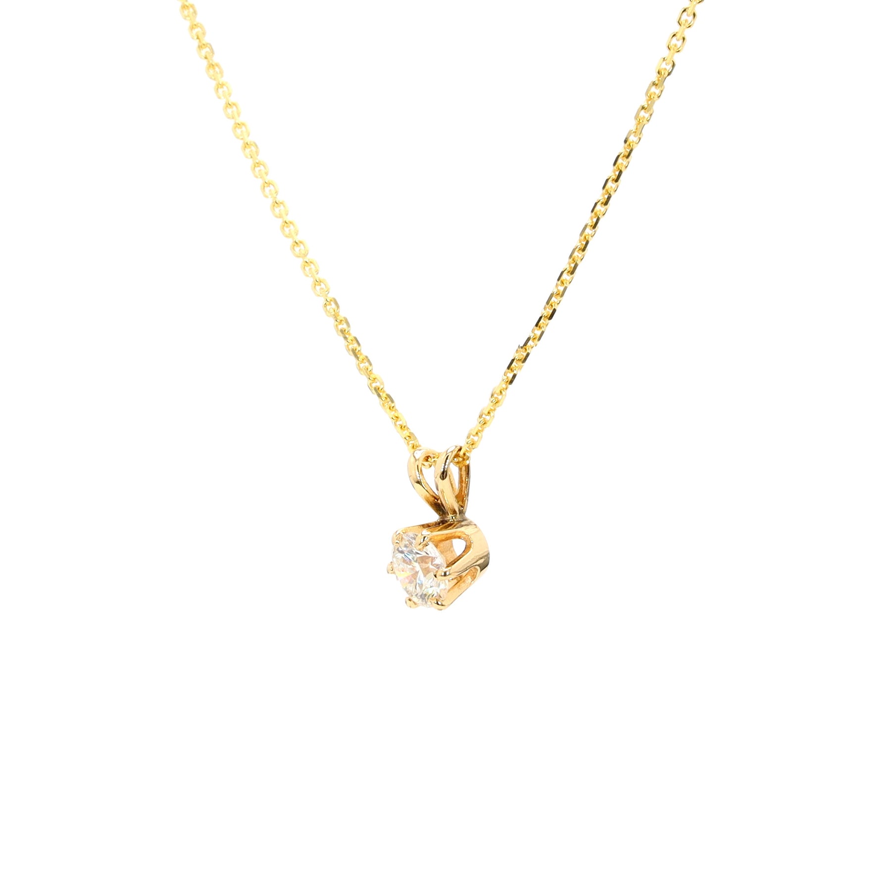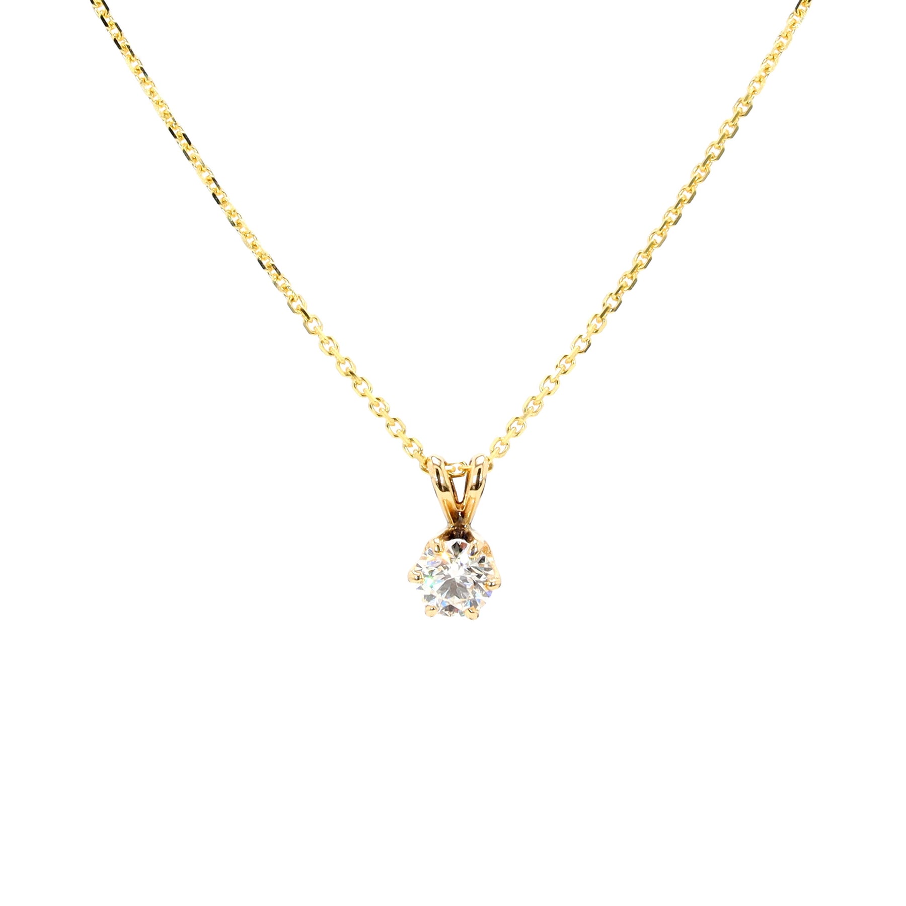 Diamond pendant necklace in 14k yellow gold, featuring a 0.40 carat round brilliant cut Diamond, on a 22 inch adjustable chain.