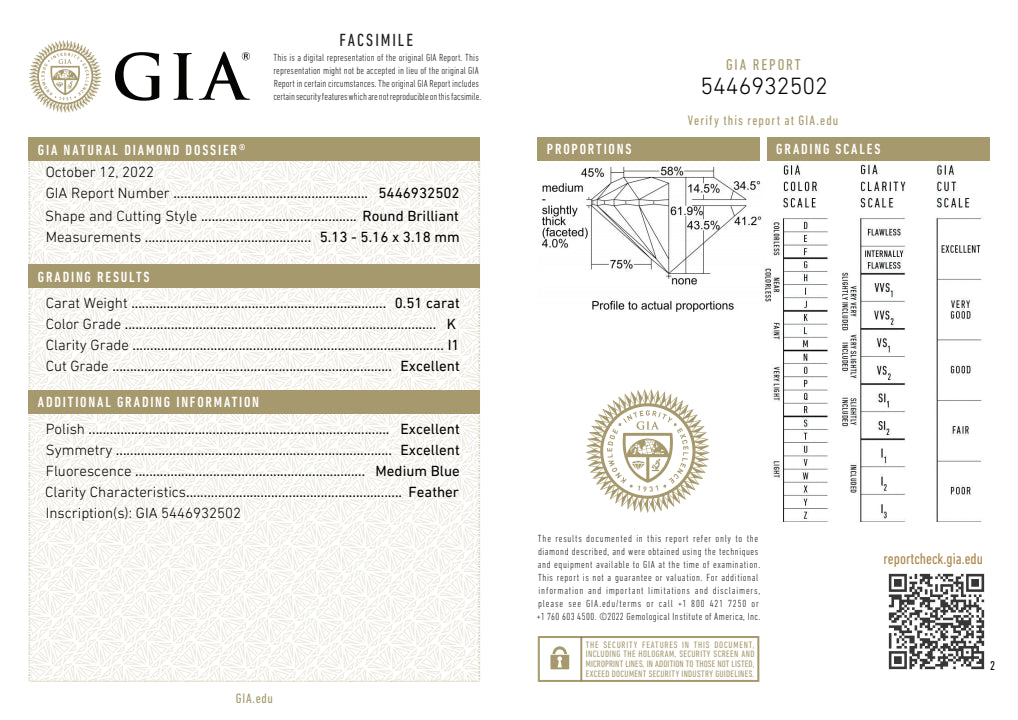 Diamond Bar 0.51CT K I1 RB GIA#5446932502