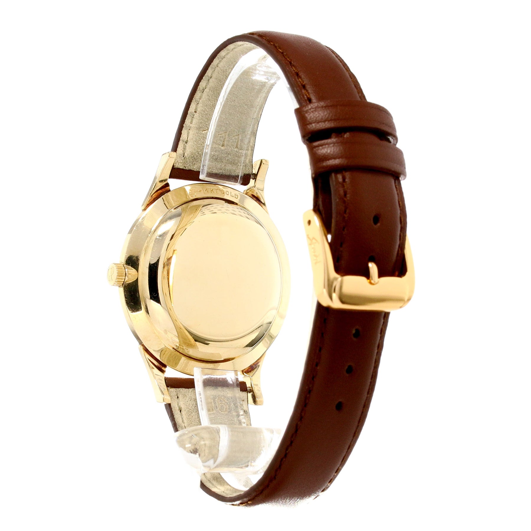 Solid 14K yellow gold case, 34mm in diameter with 16mm lugs.