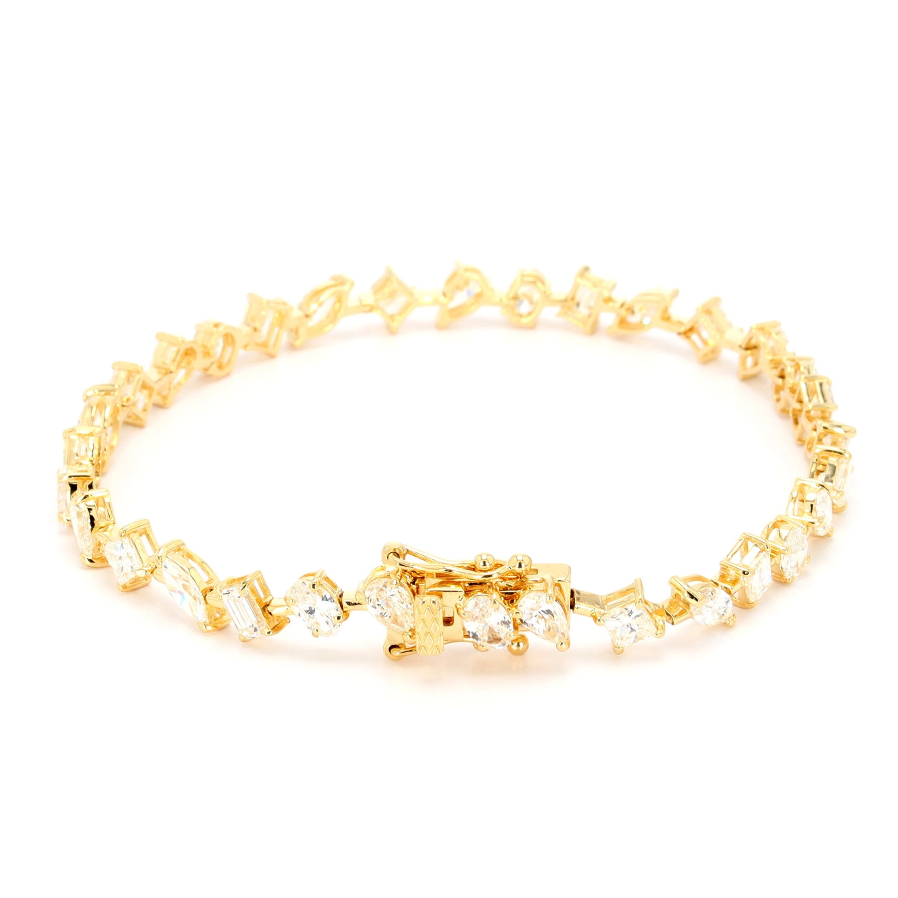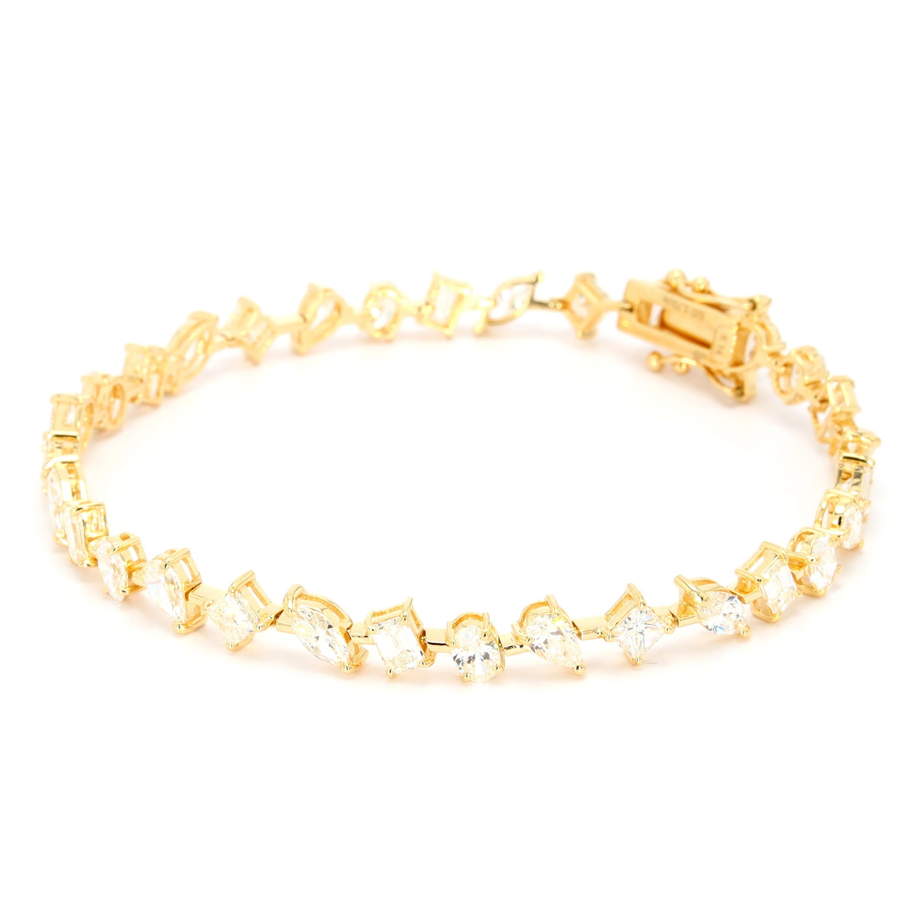 Fashion bracelet in 14-karat yellow gold featuring 32 diamonds (G/H, SI) of various cuts, including oval, pear, princess, marquise, and emerald-cut, weighing 5.70 carats.