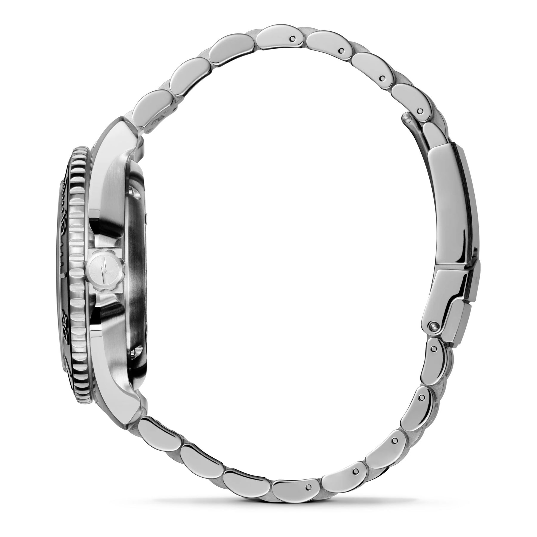This 43mm Shinola Monster hits the mark when it comes to a dive watch you can trust. Its technical acumen makes the iconic aesthetic of Shinola an added bonus. Powered by the SW200-1 automatic movement, which features 26 jewels and a 38-hour power reserve, this high-grade 316L stainless steel timepiece is meticulously engineered to withstand extreme pressure and has a depth rating of 1,000 feet. With durable, anti-reflective sapphire crystal and an anti-magnetic shield, the Shinola Monster is designed specifically with divers in mind. A unidirectional bezel keeps track of precious time underwater, and a stainless steel three-link bracelet with a micro-adjustable clasp provides a secure fit while diving. While reminding us of the Northern Lights dancing across the sky over Lake Superior when the indices give off a green glow against the dark enamel dial, the star quality of this timepiece is its performance.
