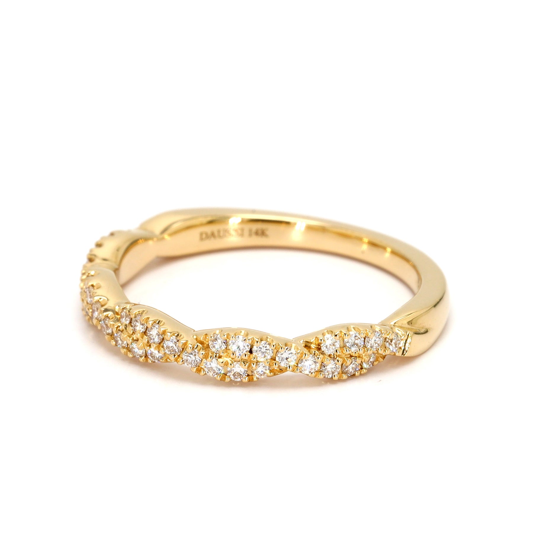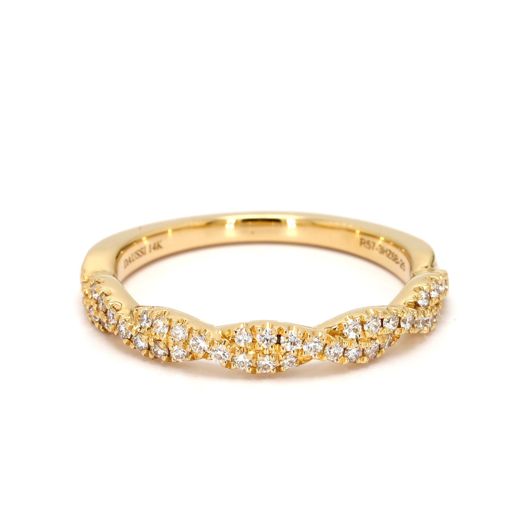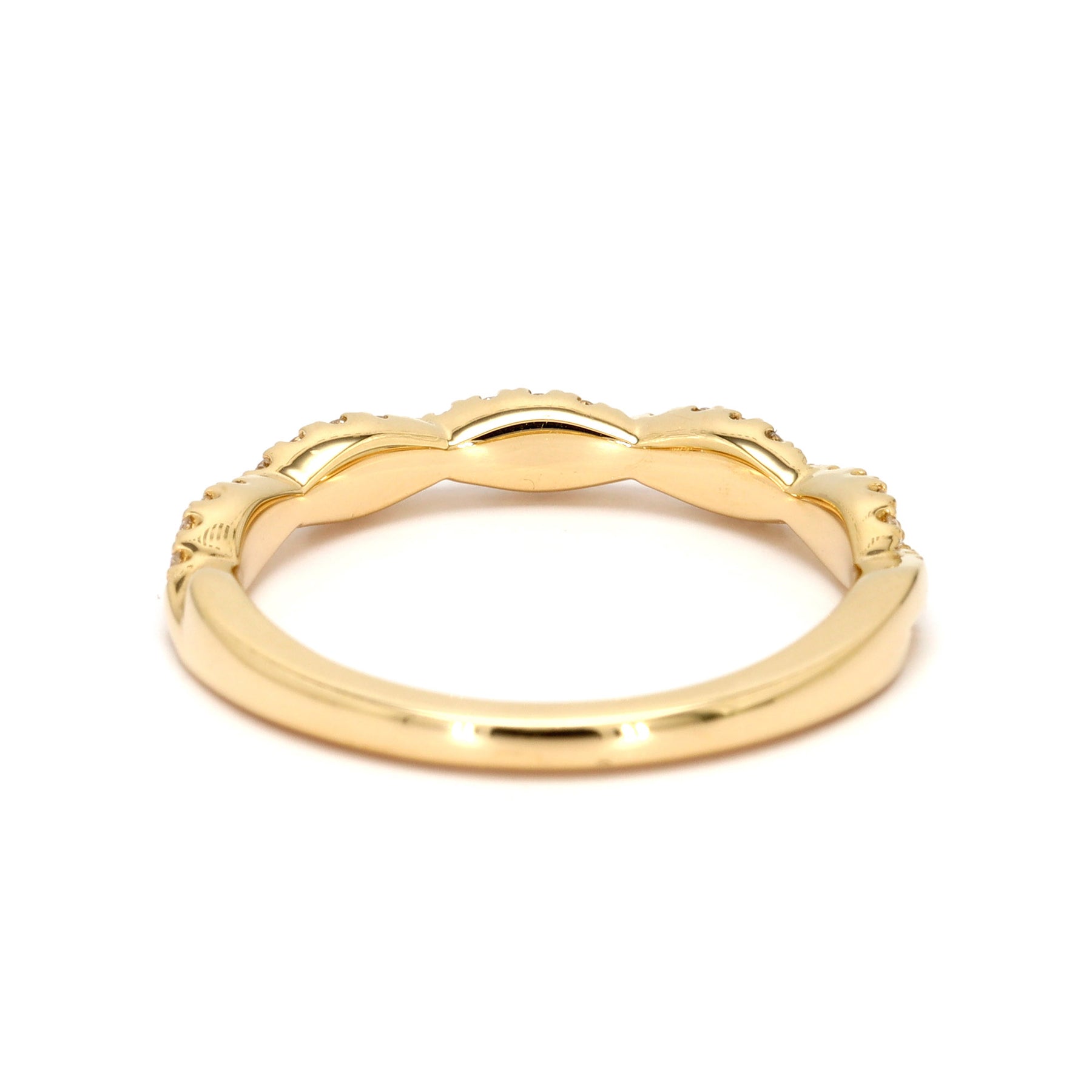 Twist wedding band in 14-karat yellow gold featuring 40 diamonds with a combined weight of 0.25 carats.