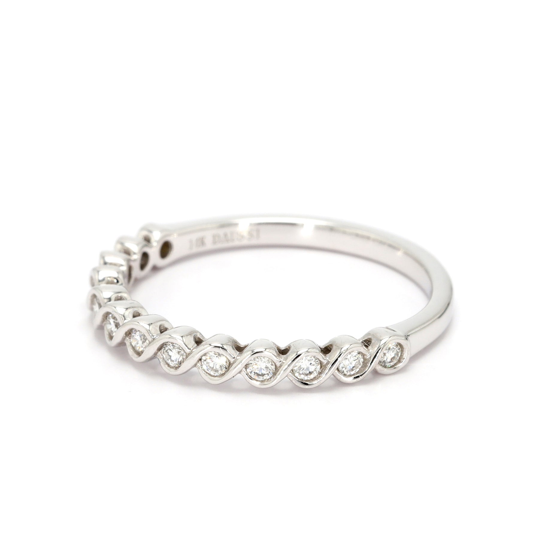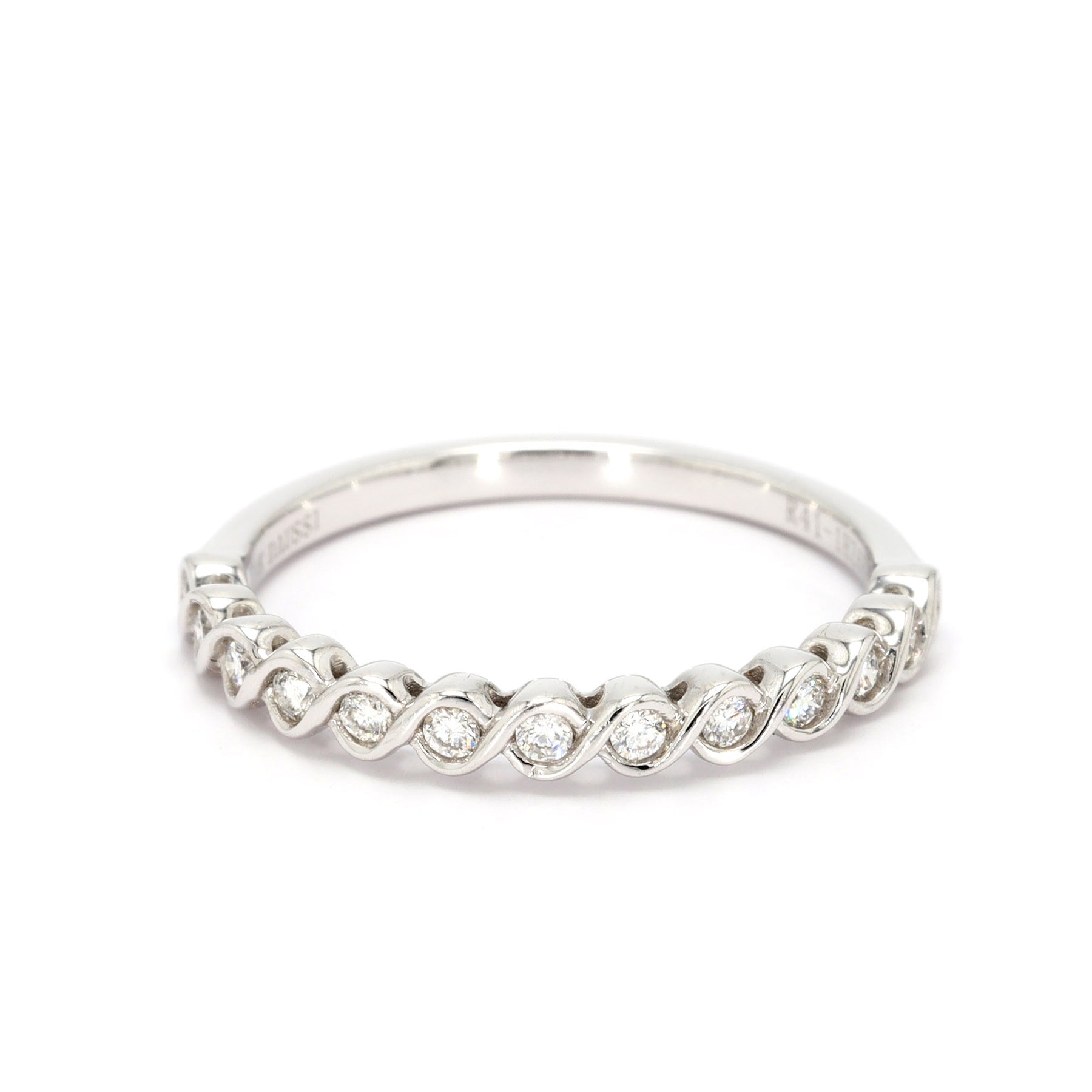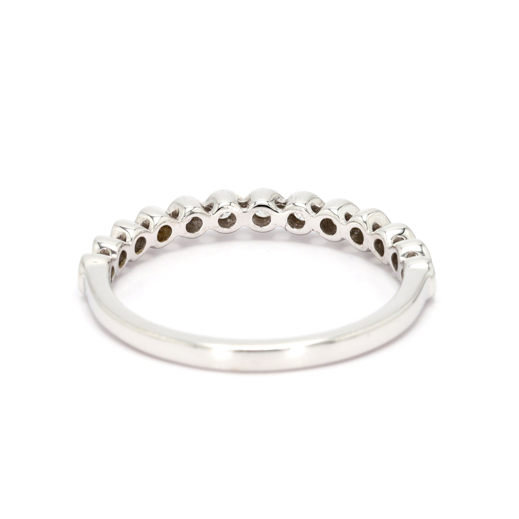 Wedding band in 14-karat white gold featuring 13 round brilliant cut Diamonds with a combined weight of 0.17 carats.