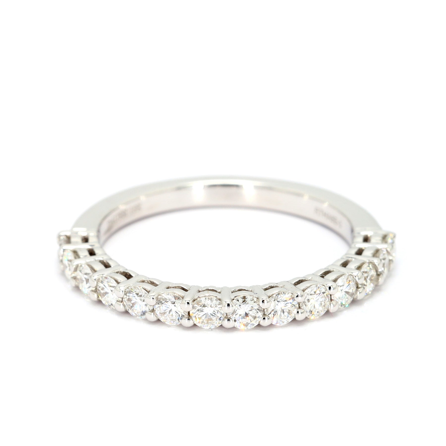 Wedding band in 18-karat white gold featuring 14 round brilliant cut Diamonds with a combined weight of 0.64 carats.