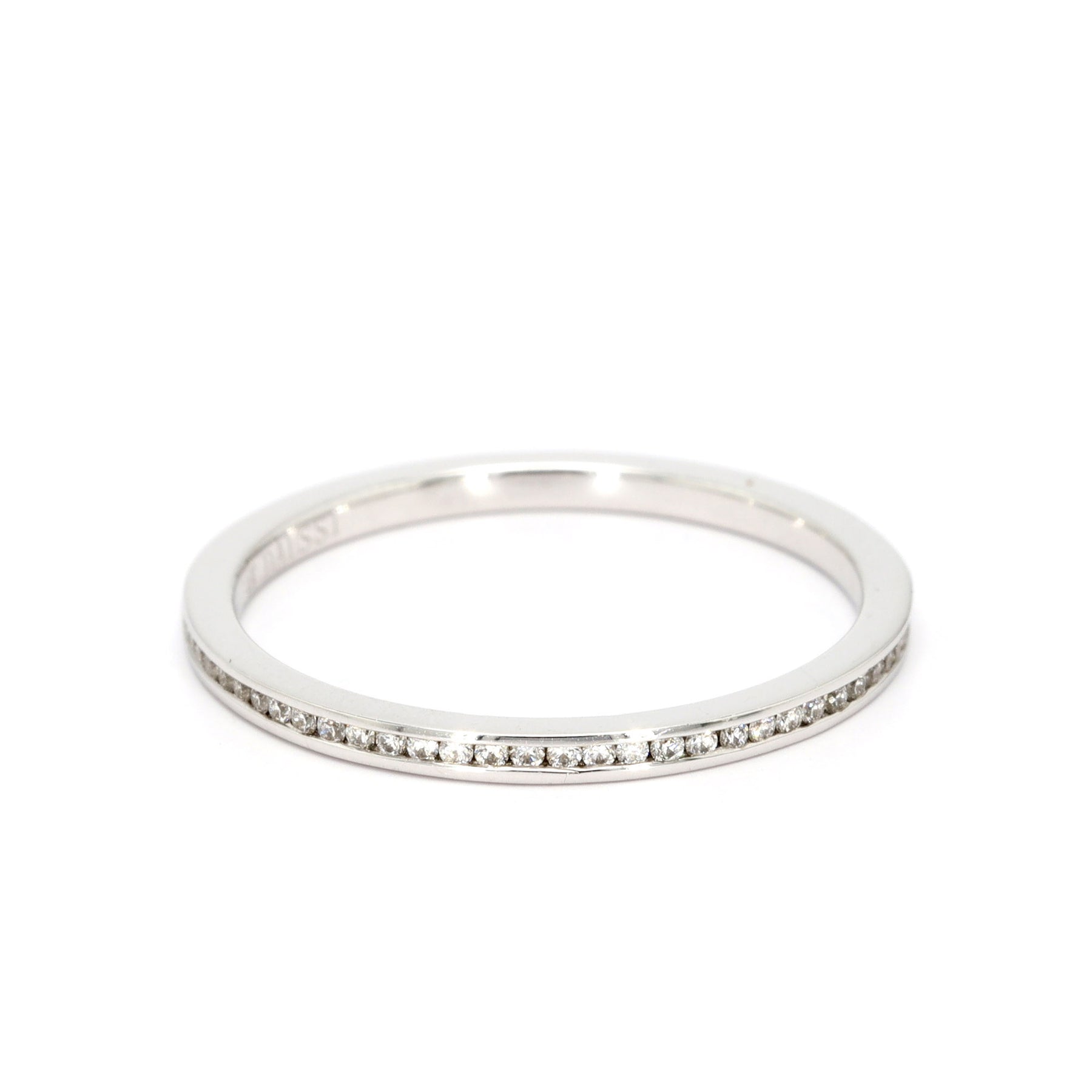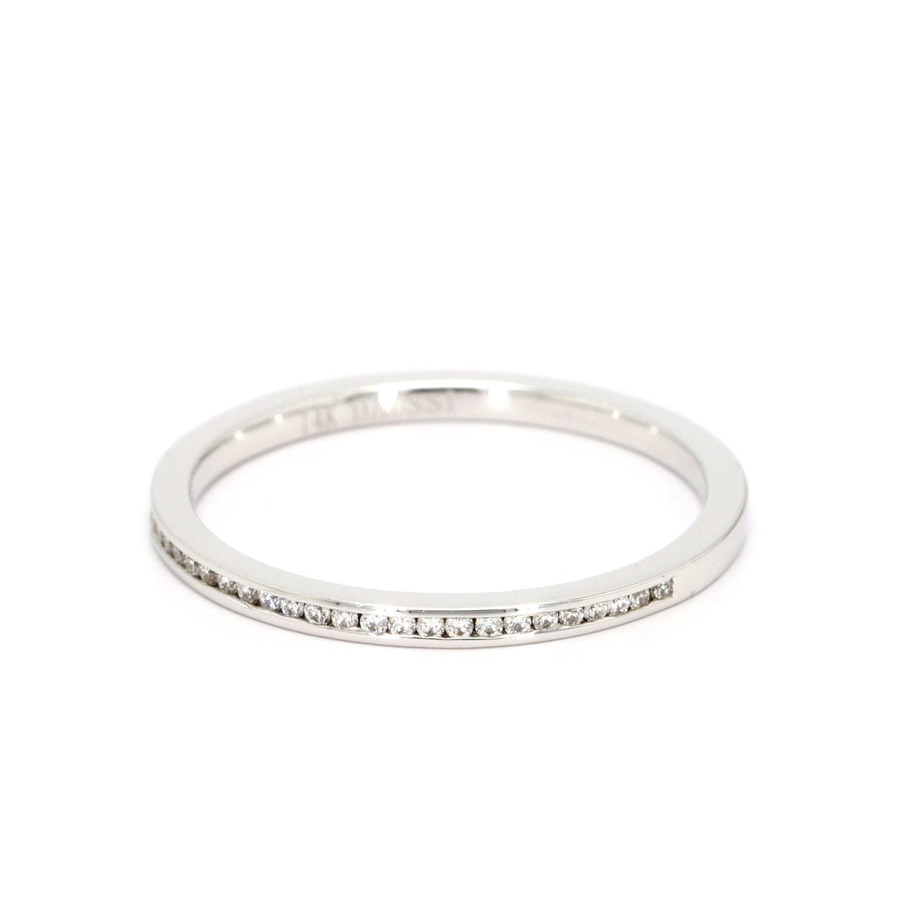 Wedding band in 14-karat white gold featuring 34 channel-set Diamonds with a combined weight of 0.10 carats.