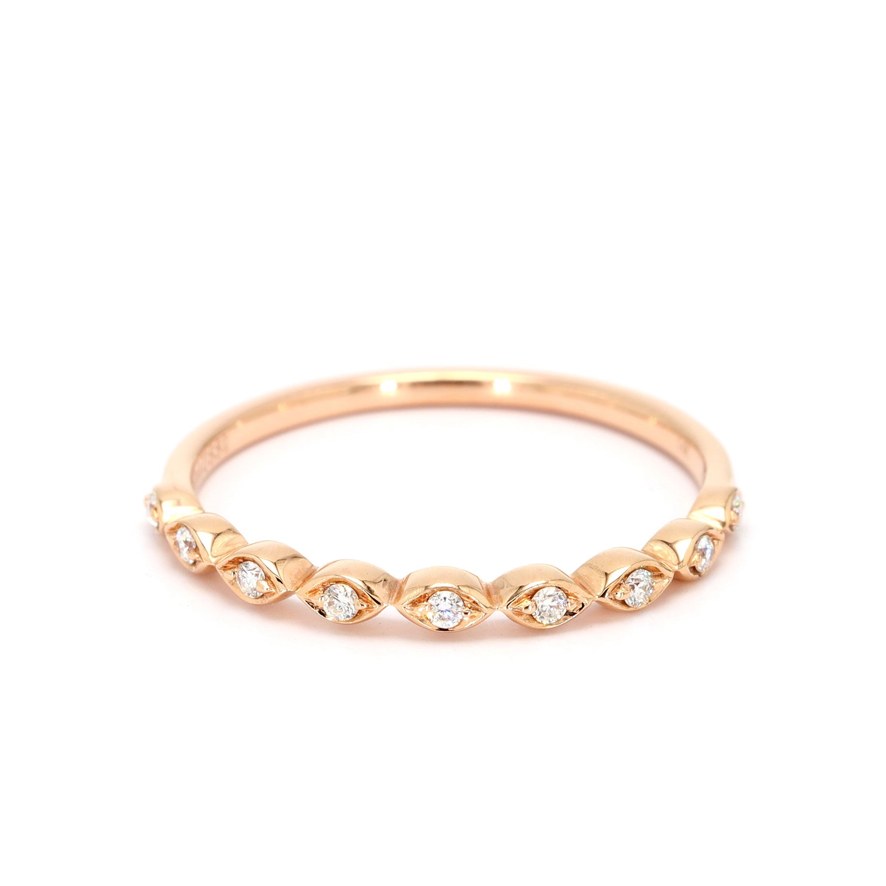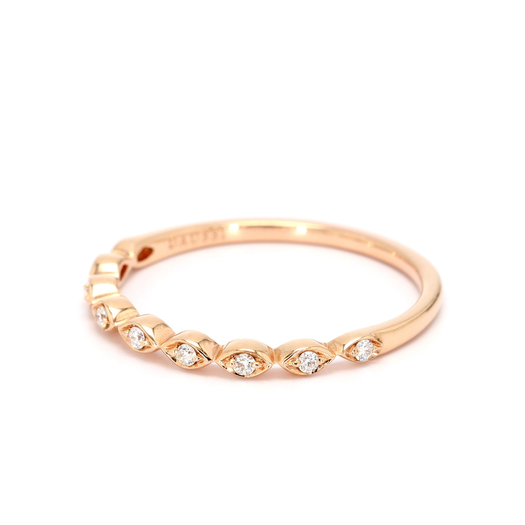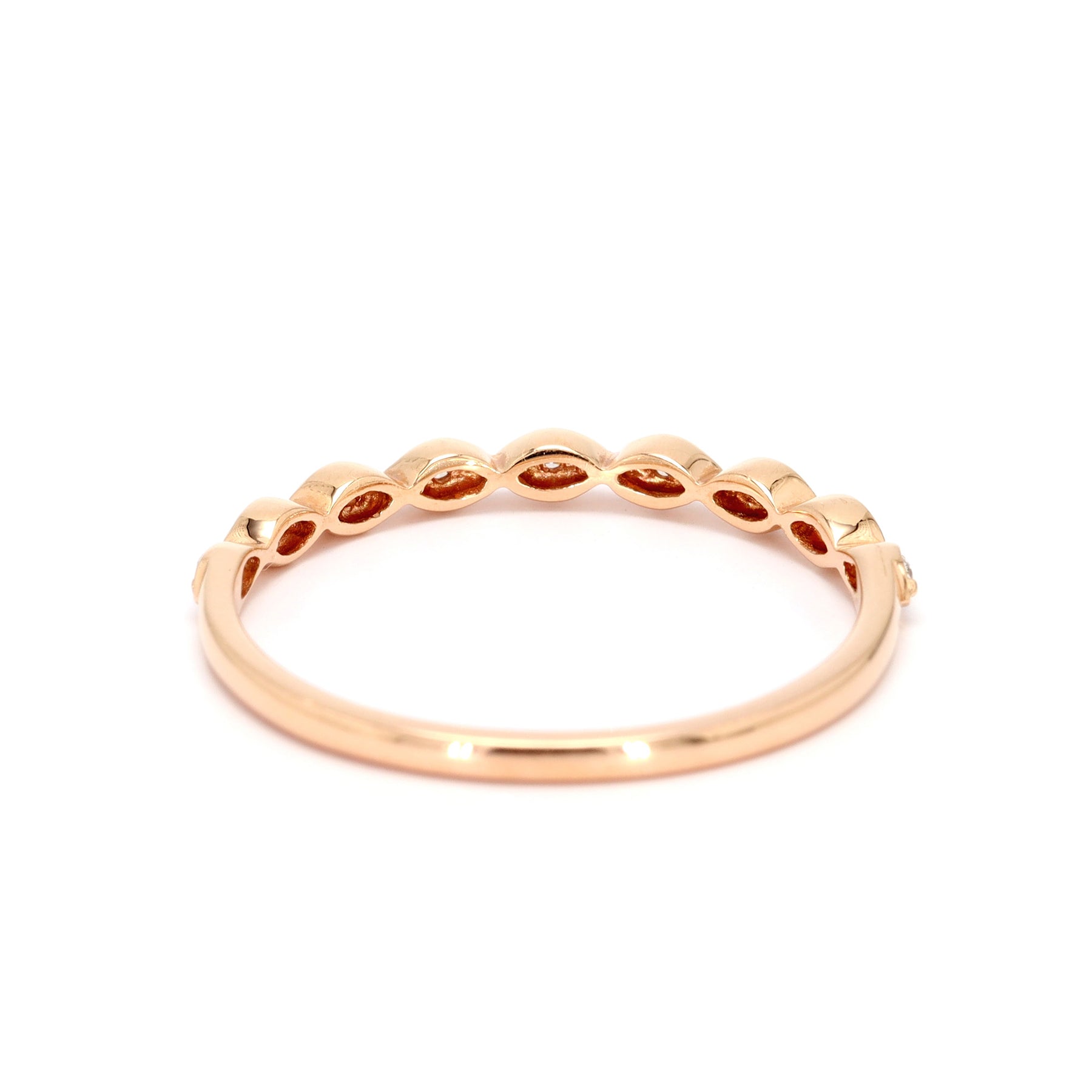 Wedding band in 14-karat rose gold featuring nine round brilliant cut Diamonds with a combined weight of 0.07 carats.