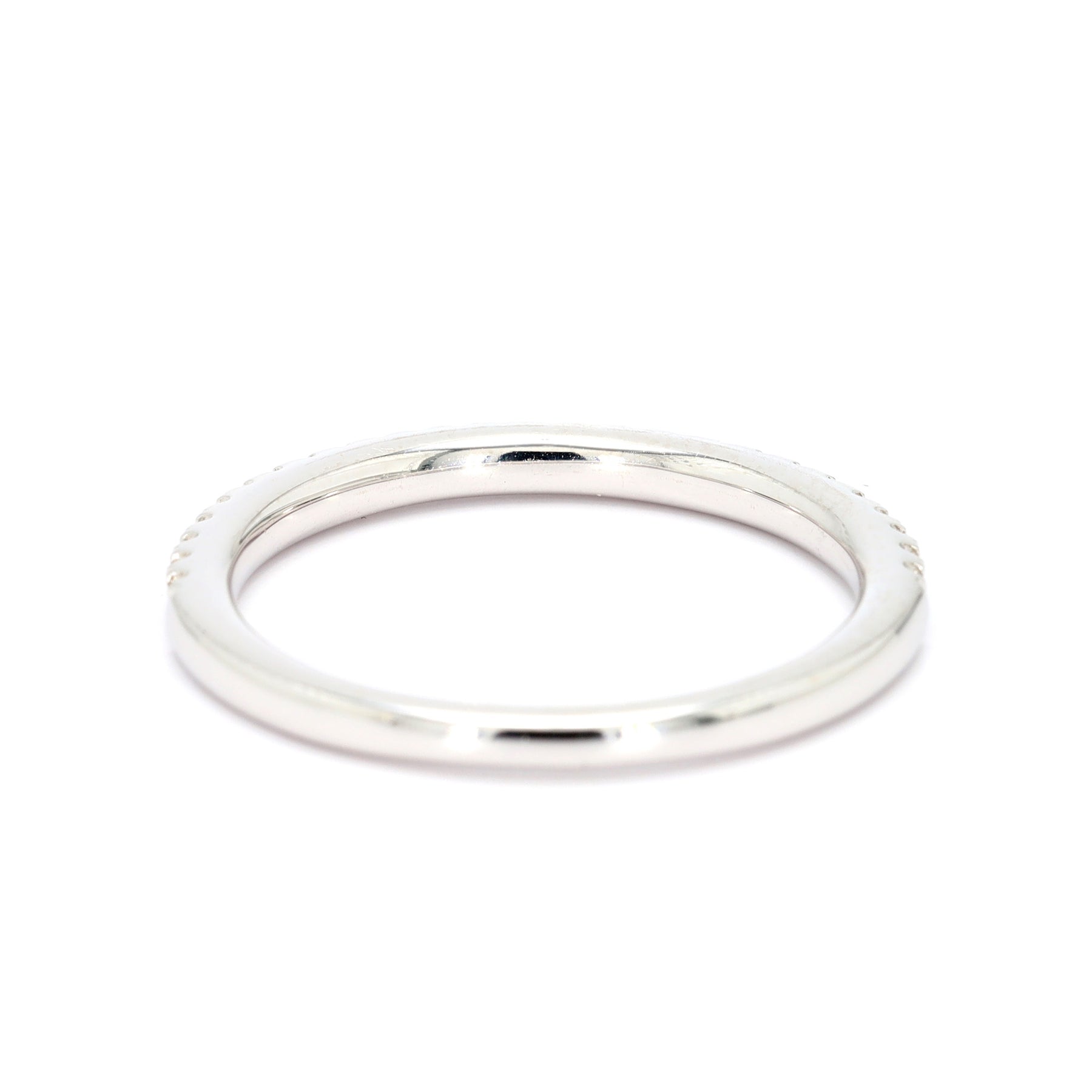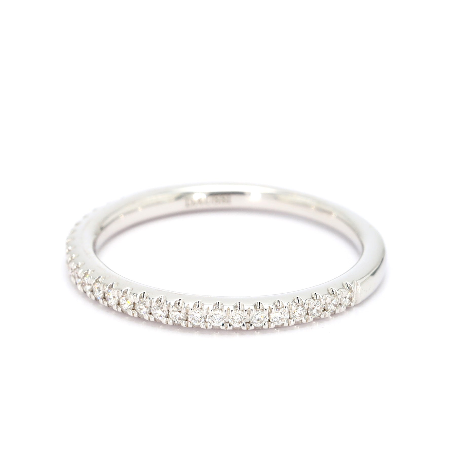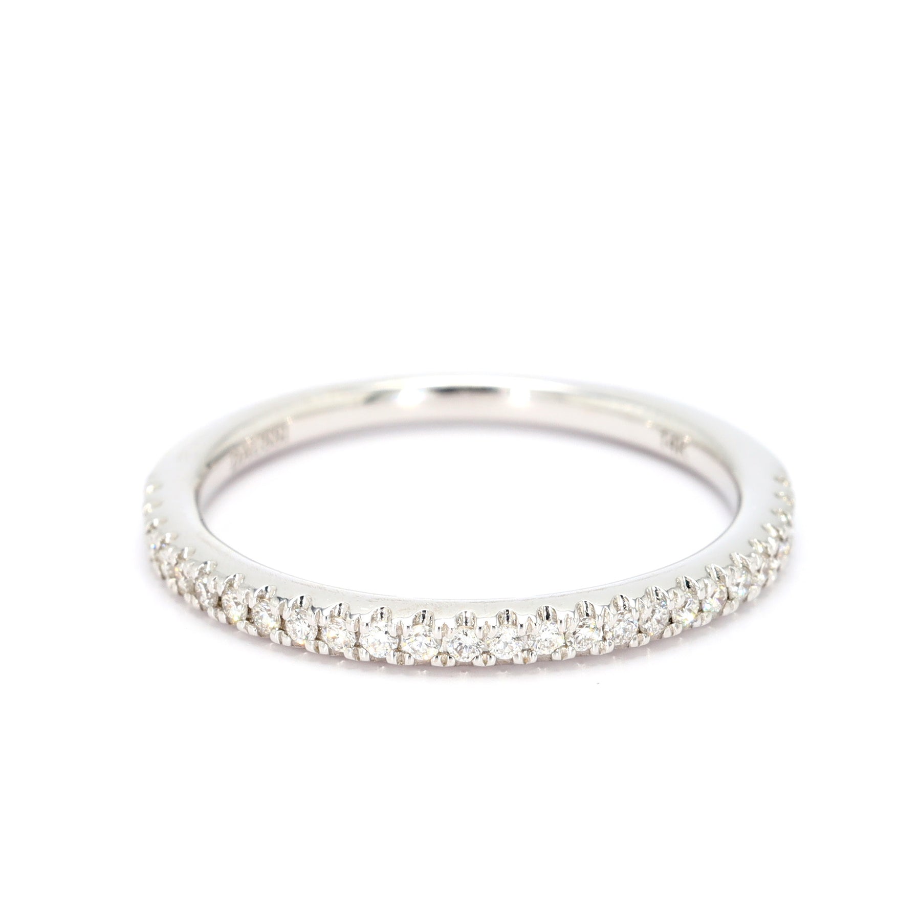 Wedding band in 14-karat white gold featuring 26 round brilliant cut Diamonds with a combined weight of 0.15 carats.