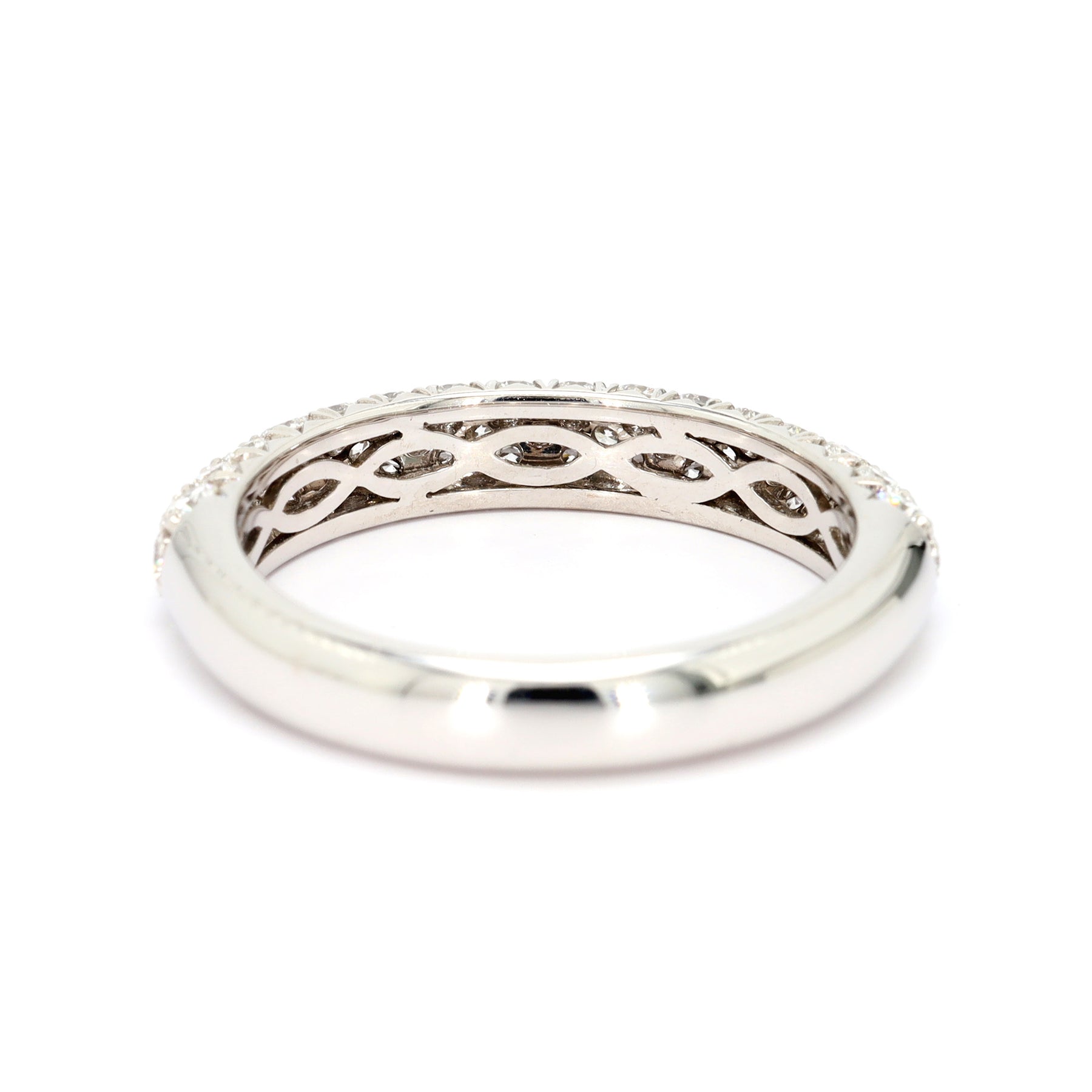 Wedding band in 18-karat white gold, featuring 49 pavé-set Diamonds with a combined weight of 0.95 carats.