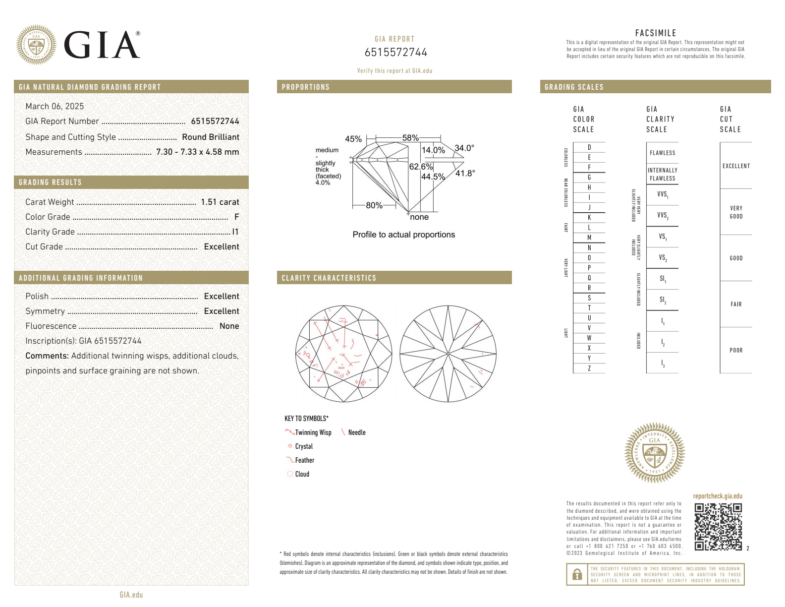 Diamond Bar 1.51ct RBC F I1 GIA#6515572744