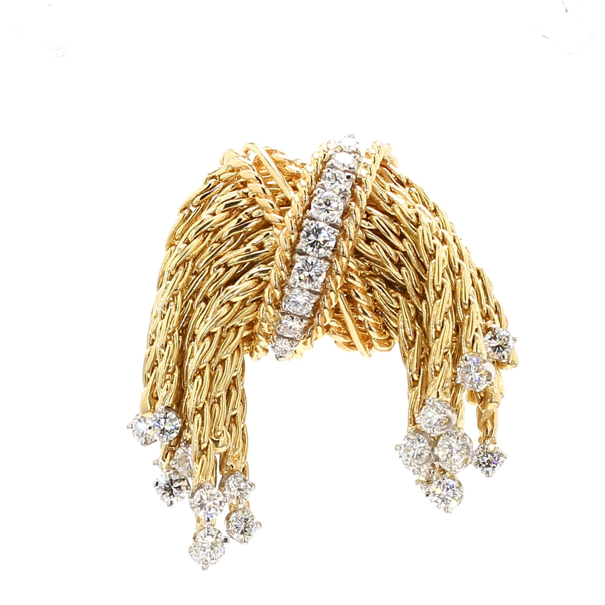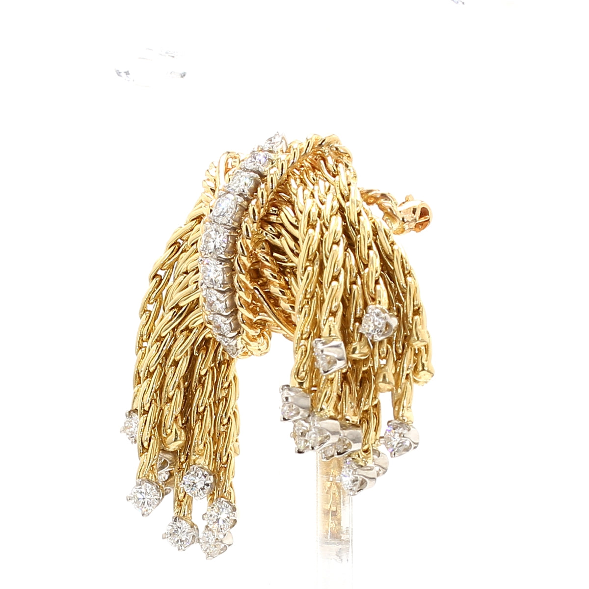 "David Friendman & Sons" tassel pin in platinum and 14-karat yellow gold featuring 29 diamonds with a combined weight of approximately 2.10 carats.