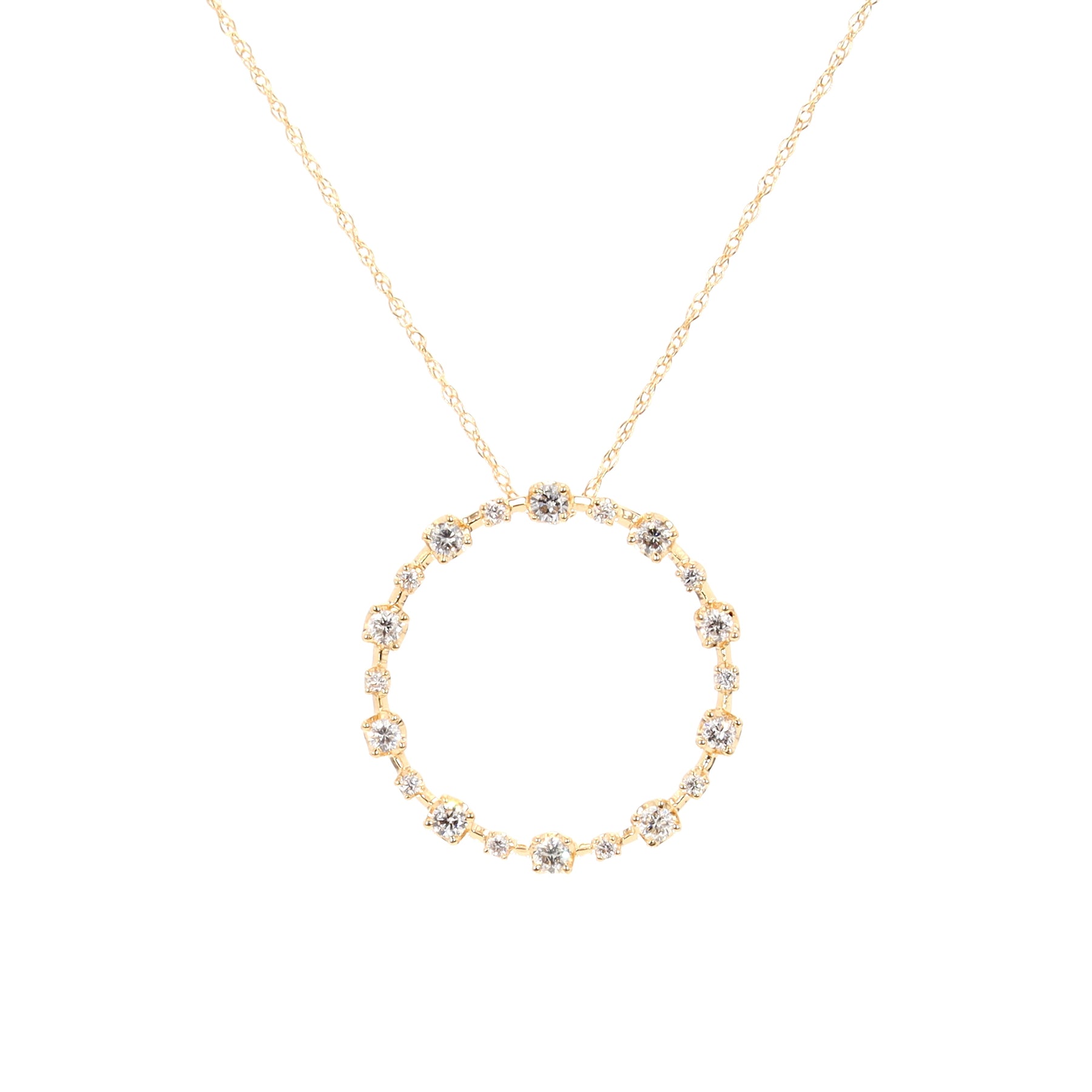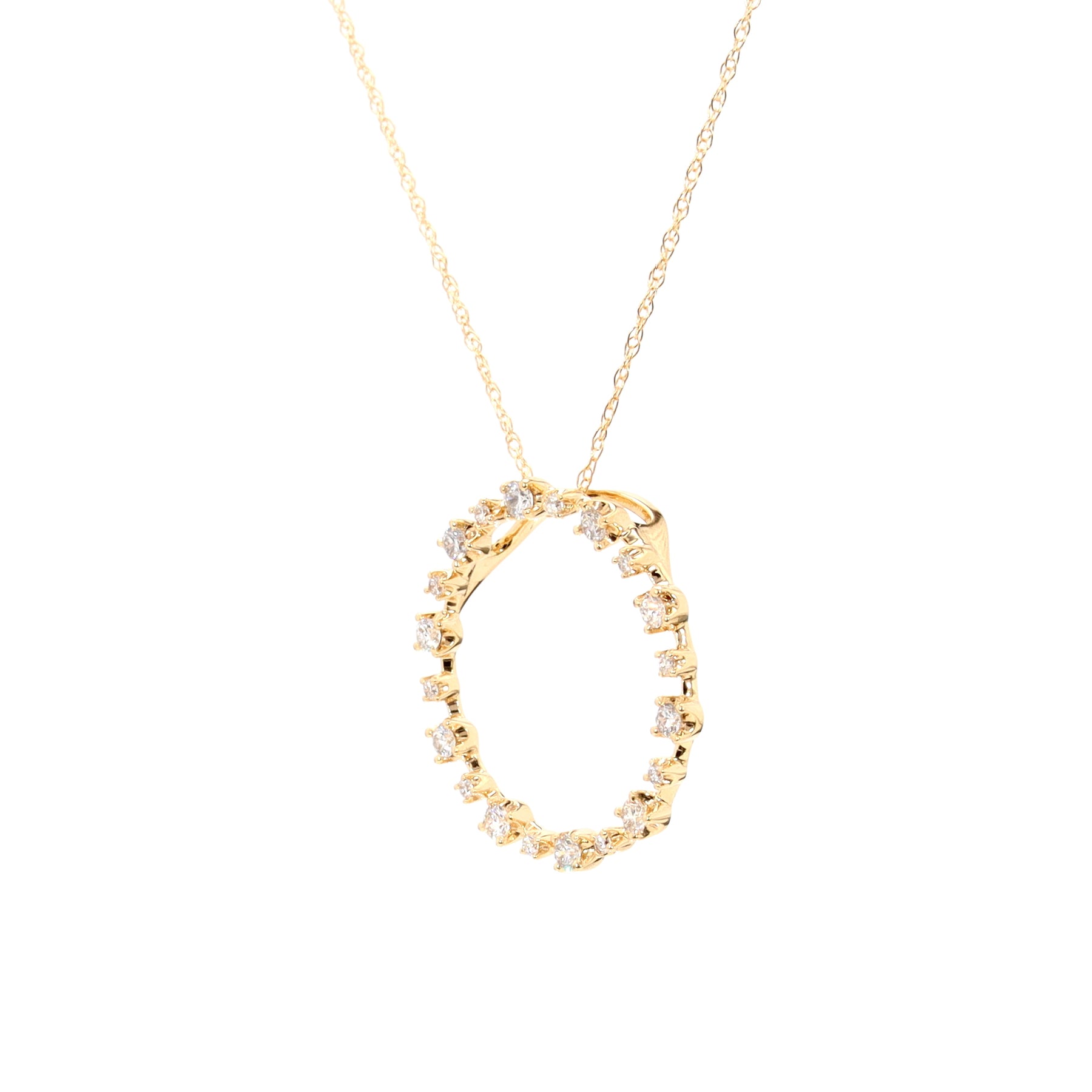 Circle pendant in 14-karat yellow gold on an 18" chain featuring 20 diamonds (G/H, SI) with a combined weight of 0.25 carats.