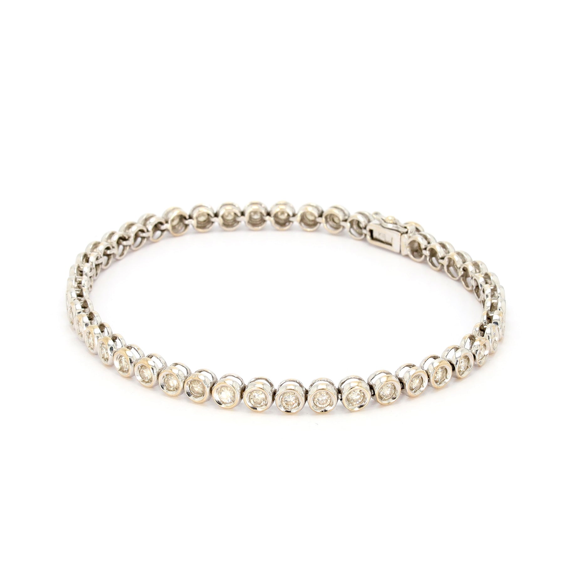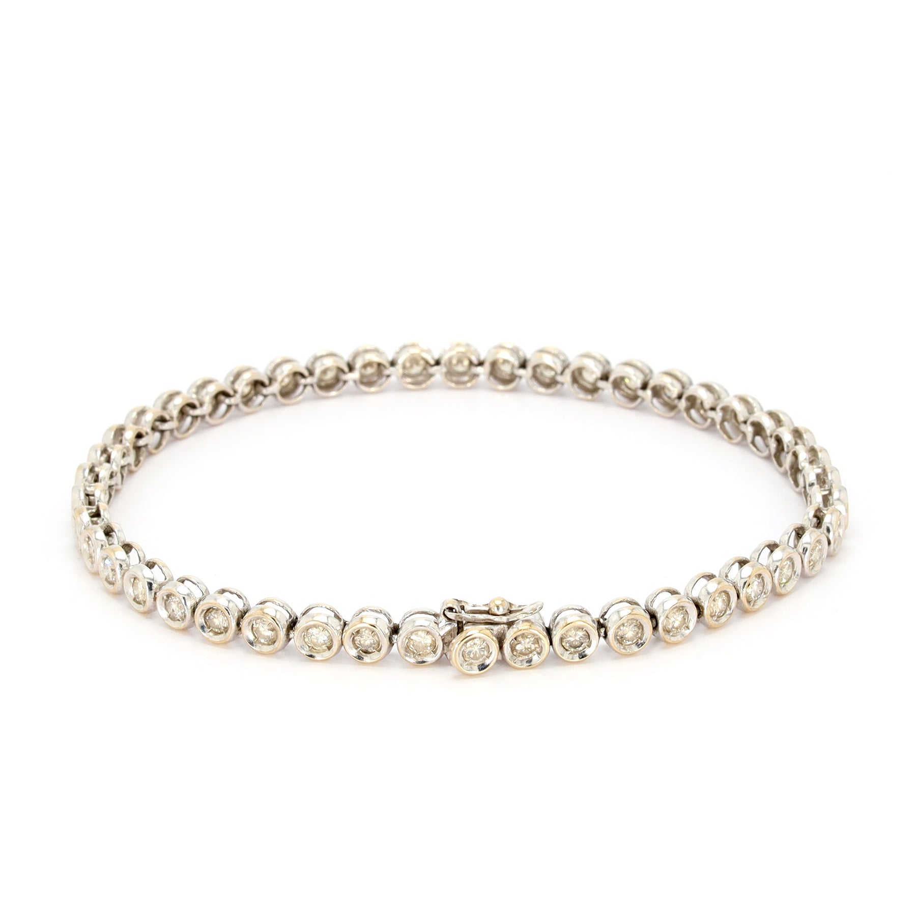 Tennis bracelet measuring 7.25" in length in 18-karat white gold featuring 45 diamonds (H-J, SI) with a combined weight of approximately 2.00 carats.