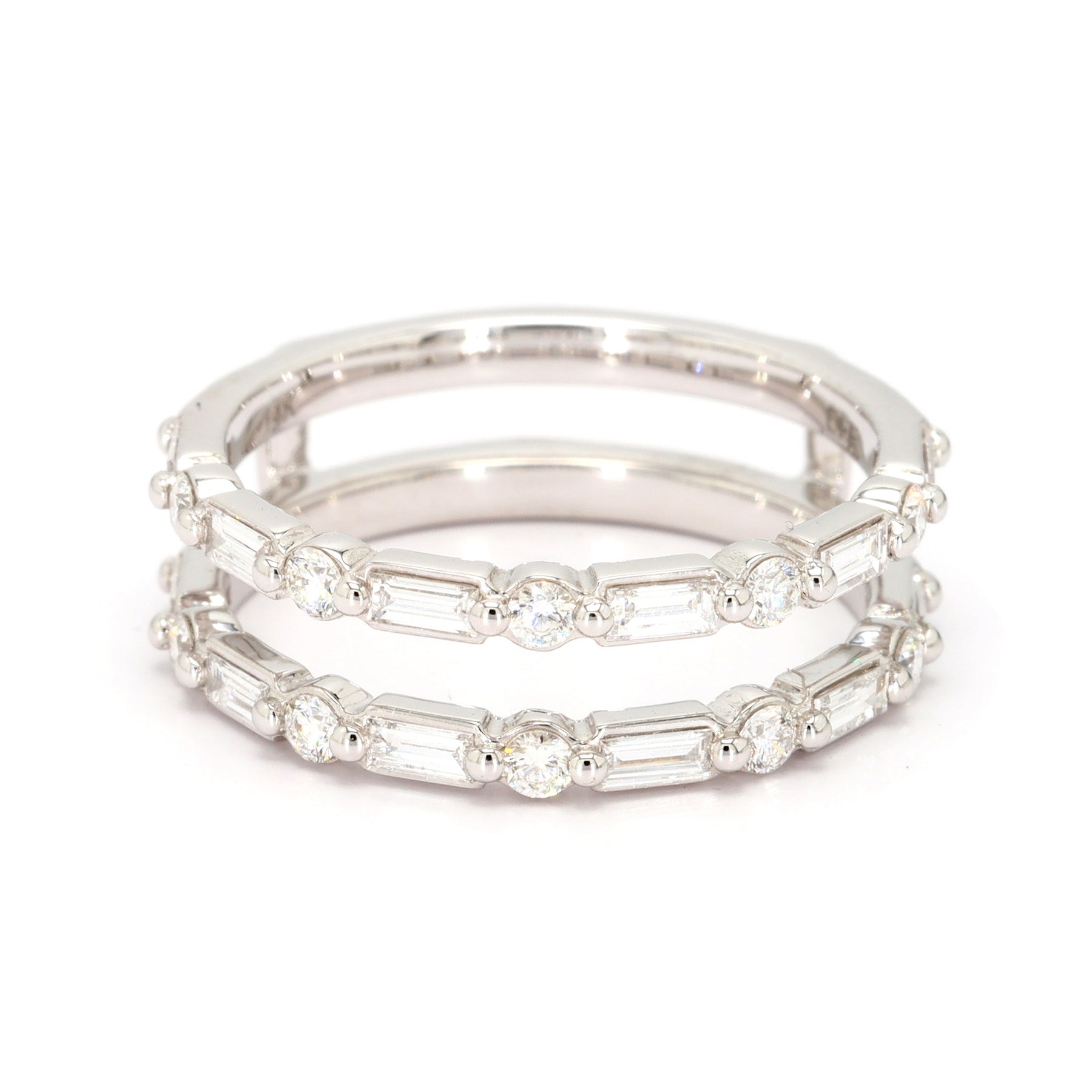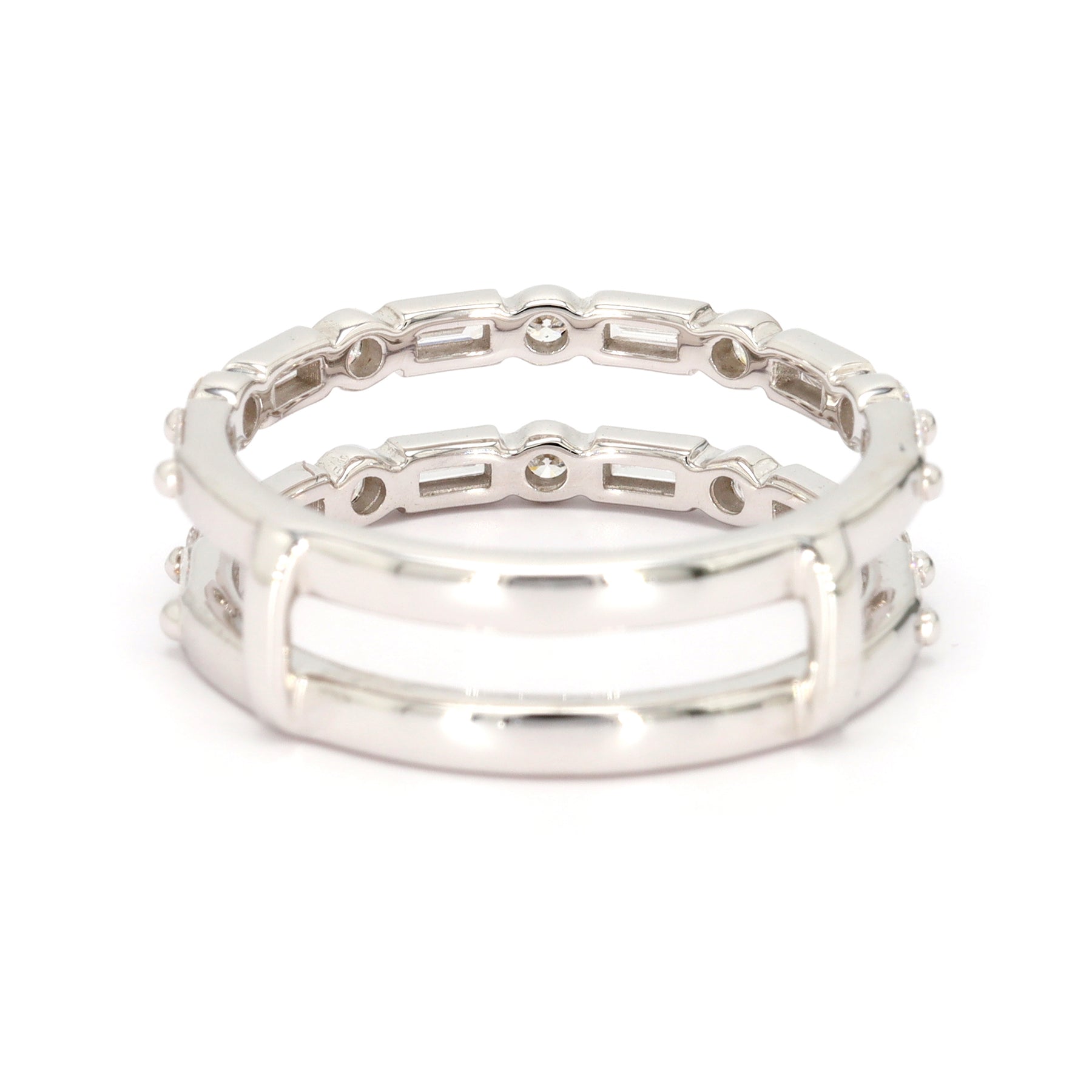 Wedding jacket in 14-karat white gold featuring 22 round brilliant and baguette cut Diamonds with a total weight of 0.75 carats.