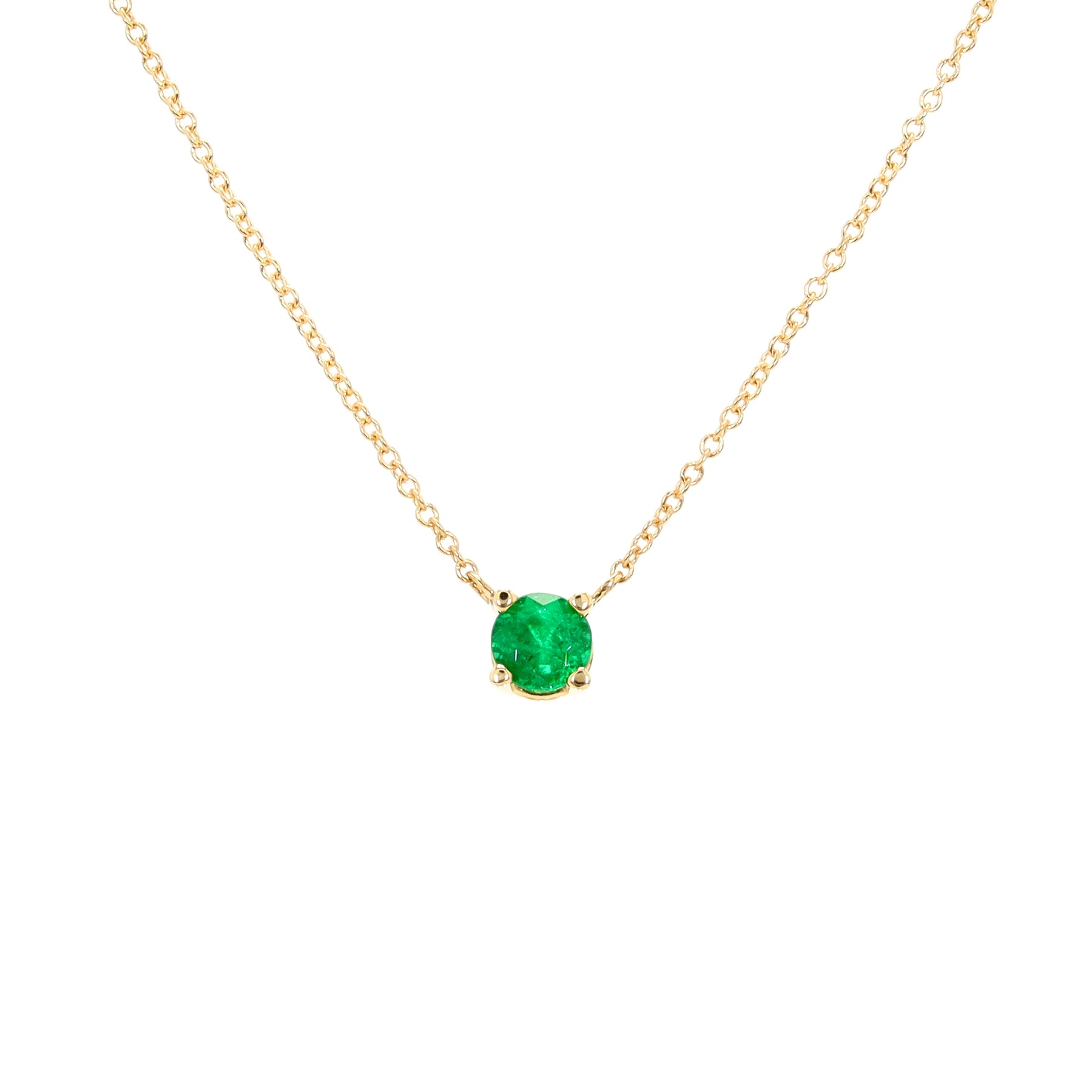 Solitaire fixed pendant necklace in 14-karat yellow gold, featuring a 0.38 carat round cut Emerald, on a 16" chain