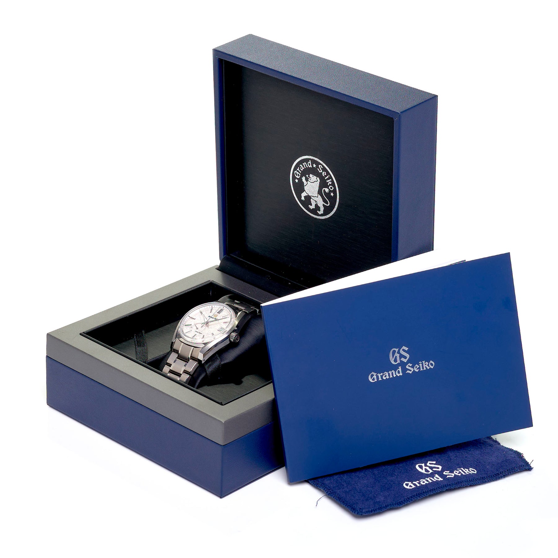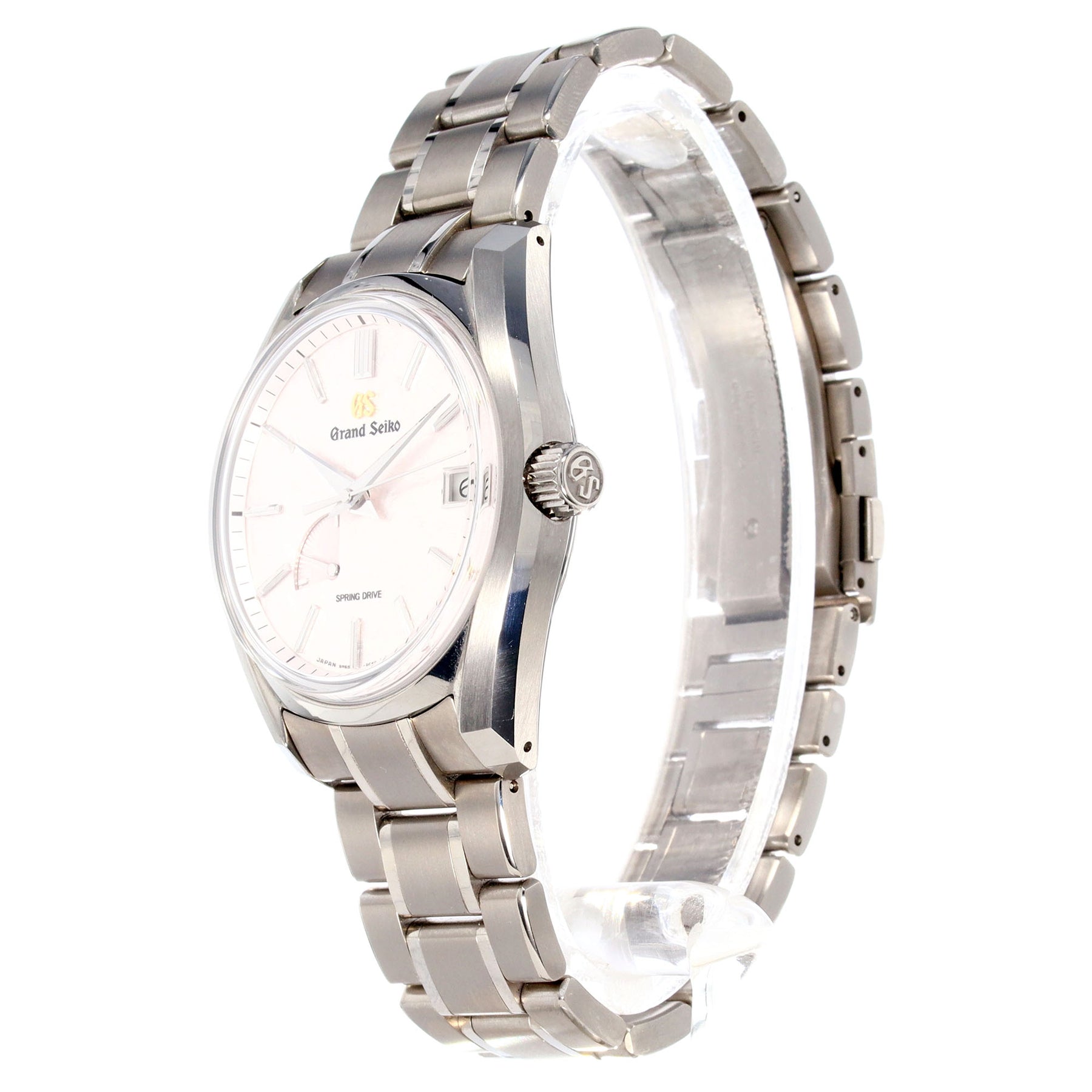 Pre-owned Grand Seiko Heritage 40mm Spring Drive Dress Watch (Ref. SBGA413, c. 2023), in Titanium with Cherry Blossom Dial. Excellent Condition with Box and Papers.