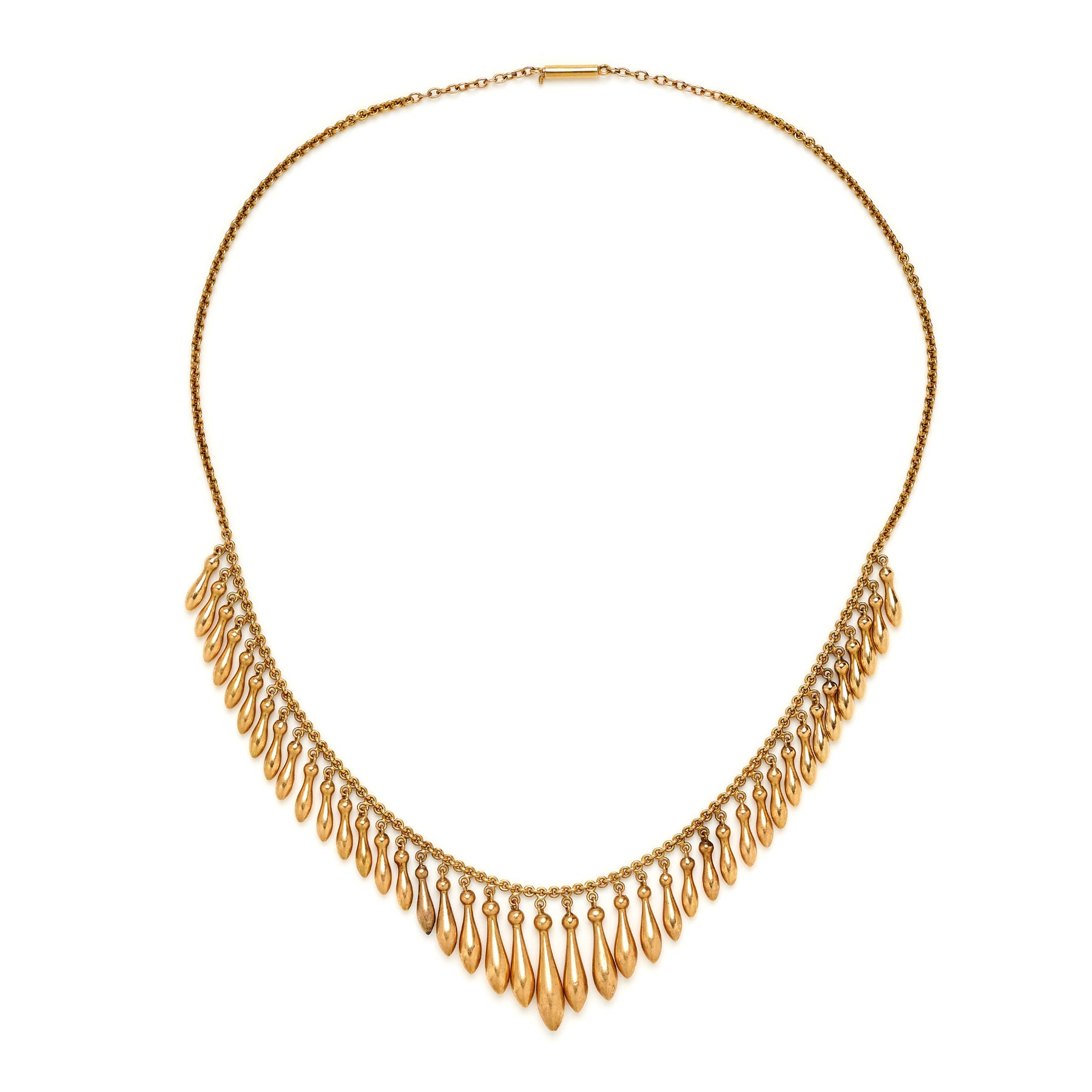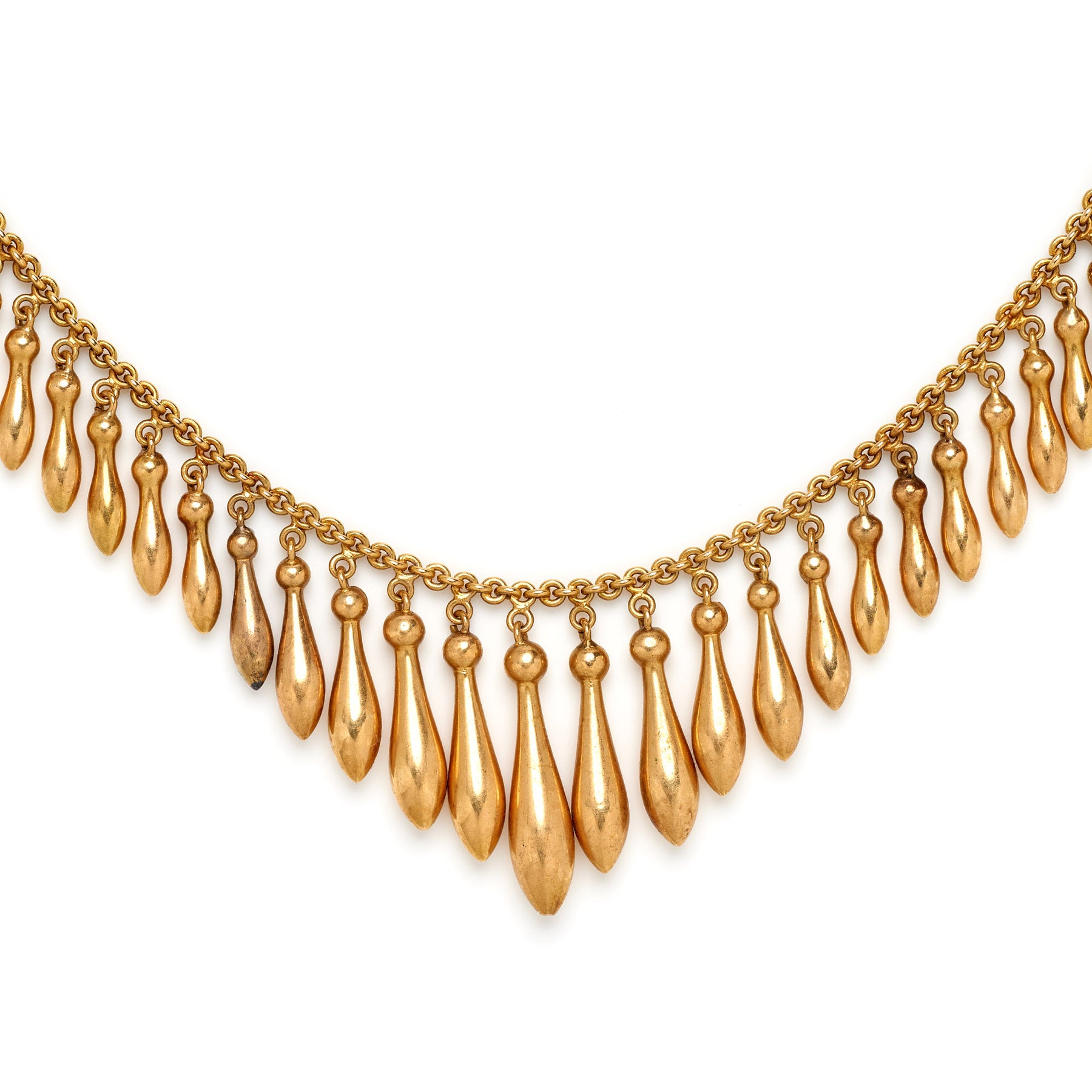 Late Victorian fringe necklace in 14-karat yellow gold, measuring 16" in length