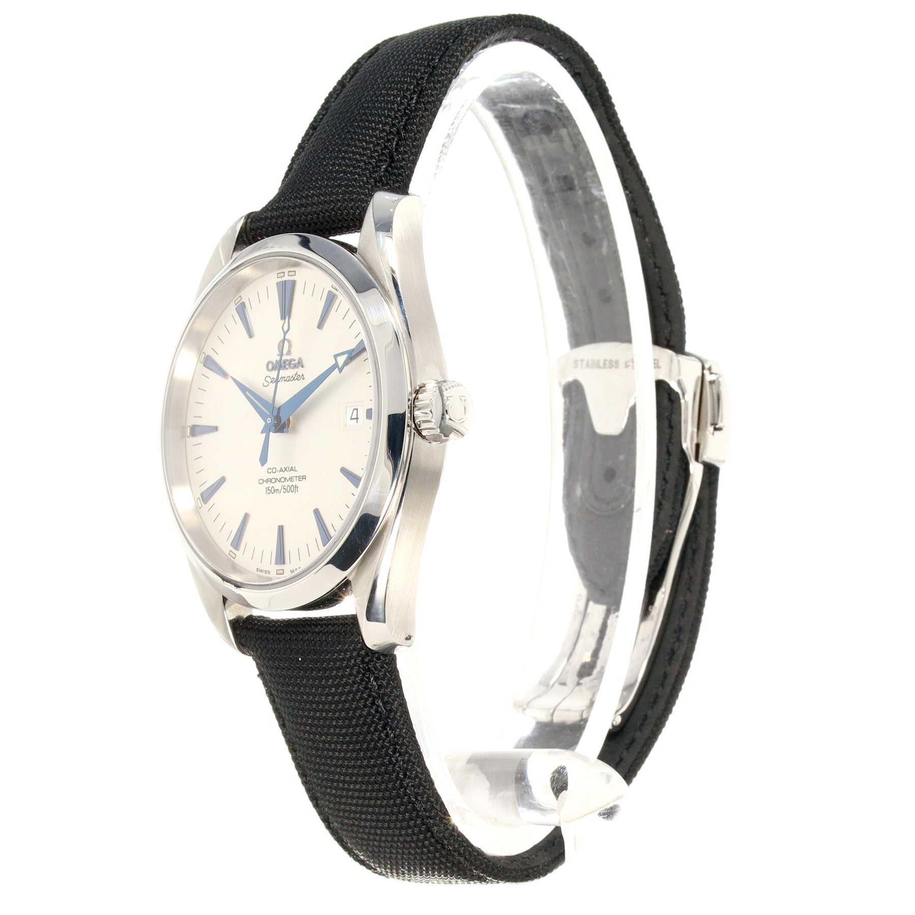 The Omega Seamaster Aqua Terra 2503.33 is a refined and versatile luxury timepiece, ideal for collectors and professionals seeking understated elegance with robust performance. This pre-owned model is in excellent condition and features a clean silver dial accented by striking blue hands and hour markers, offering a crisp and modern aesthetic.