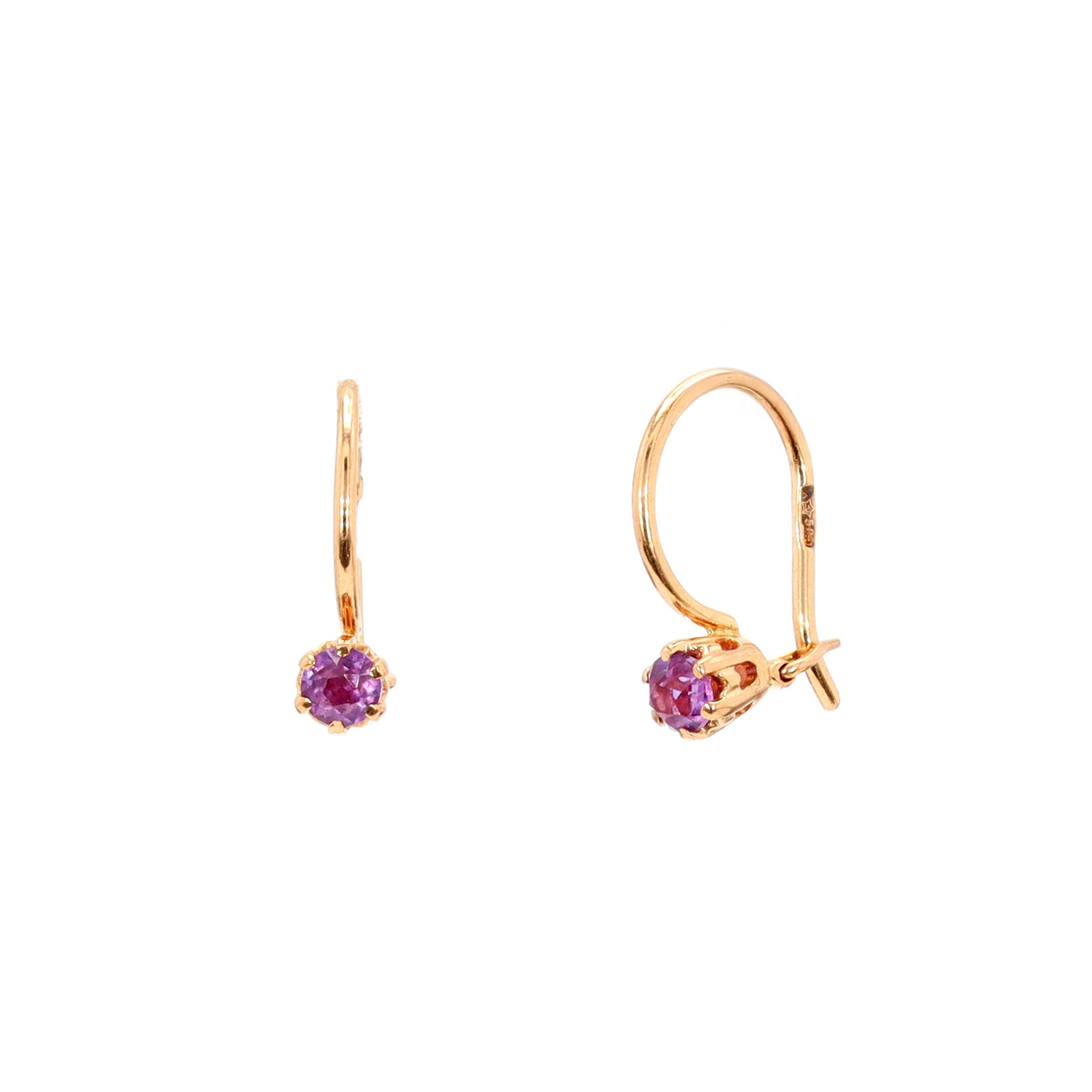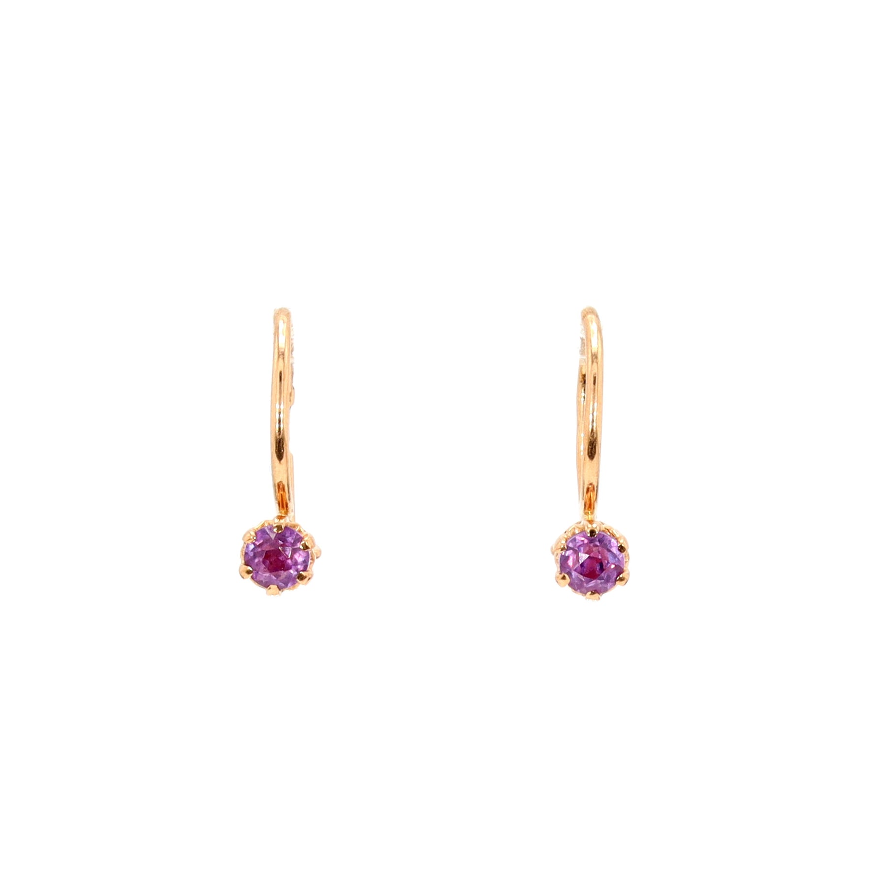 Sapphire earrings in 14-karat rose gold, featuring two purple Sapphires with a combined weight of approximately 0.25 carats.