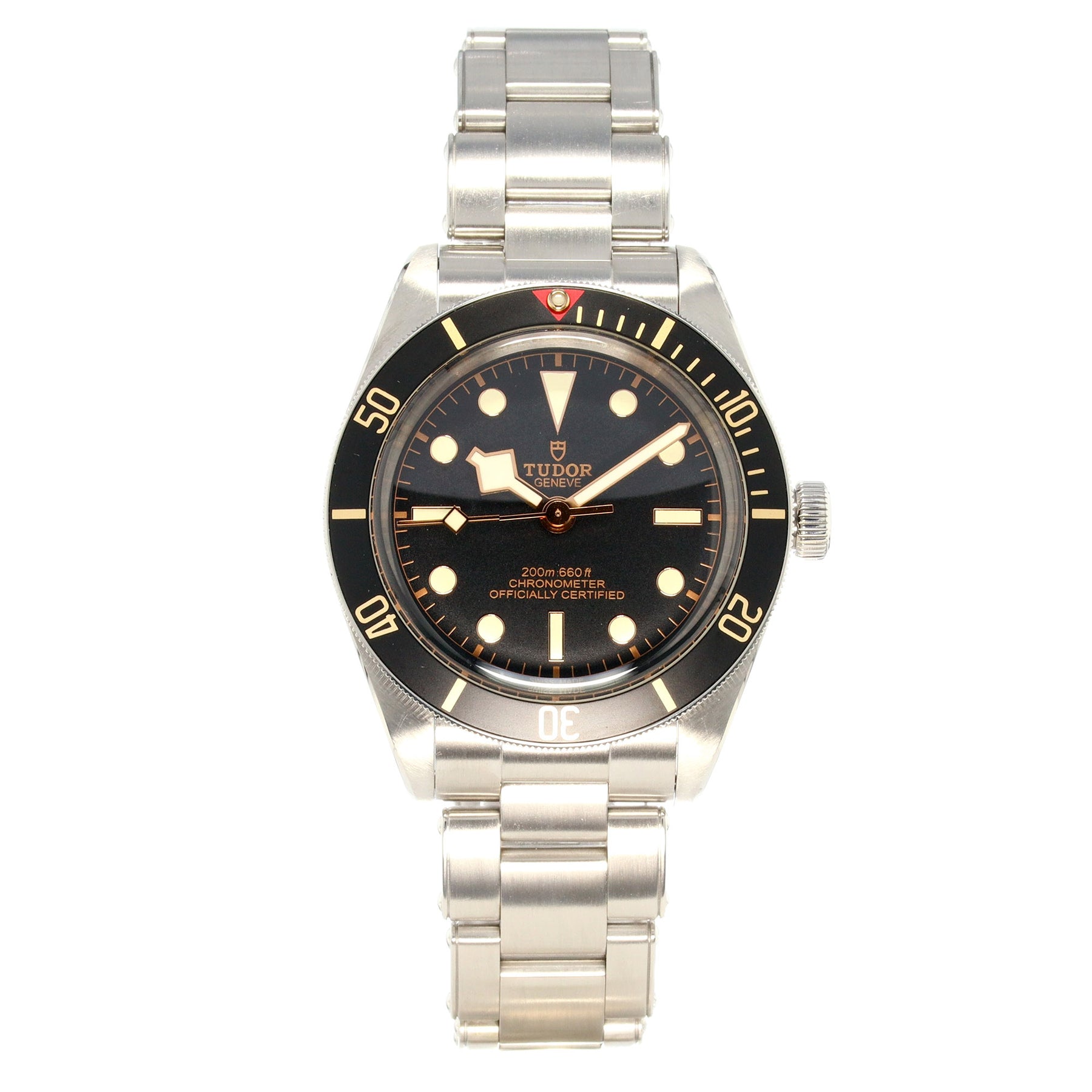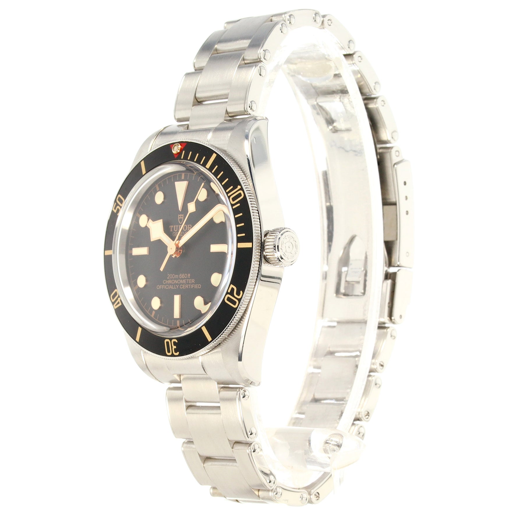 Powered by the Tudor Caliber MT5402 automatic movement, this watch offers a 70-hour power reserve and COSC-certified chronometer accuracy. It is water-resistant to 200 meters and fitted with a rivet-style stainless steel bracelet with a folding clasp and safety catch.