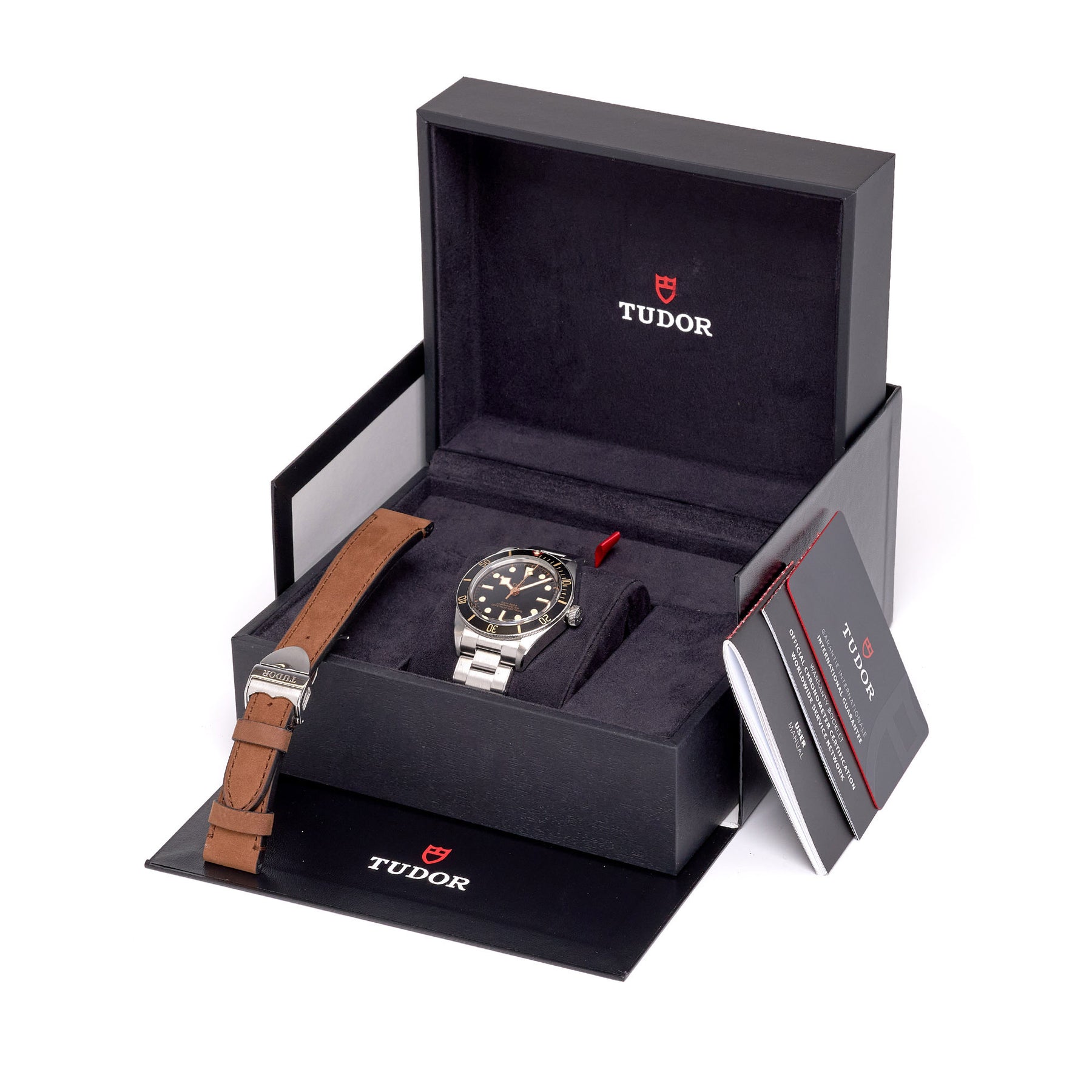 This example is in excellent condition and includes the original Tudor box and papers, making it a complete and collectible set for enthusiasts of modern heritage-inspired watches.