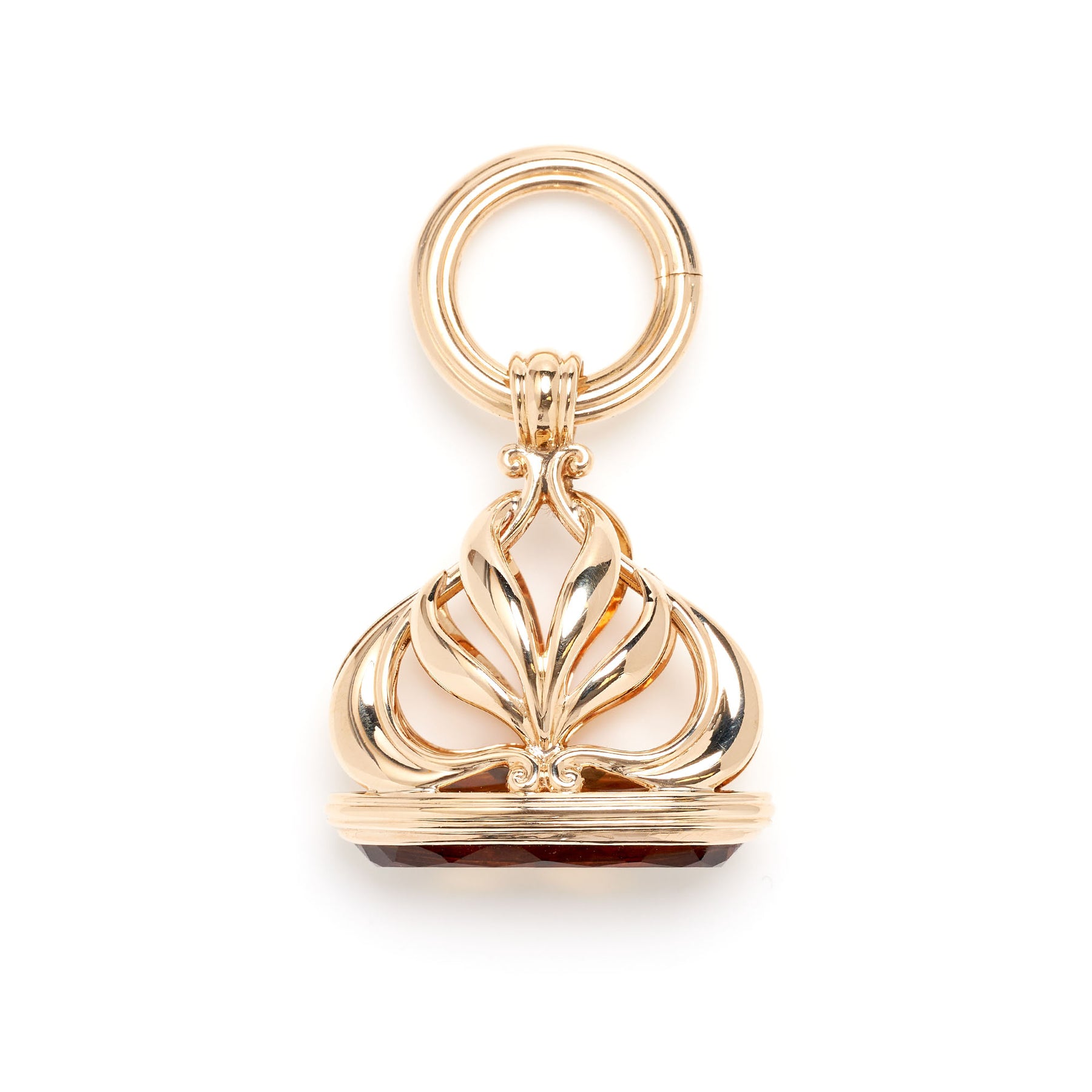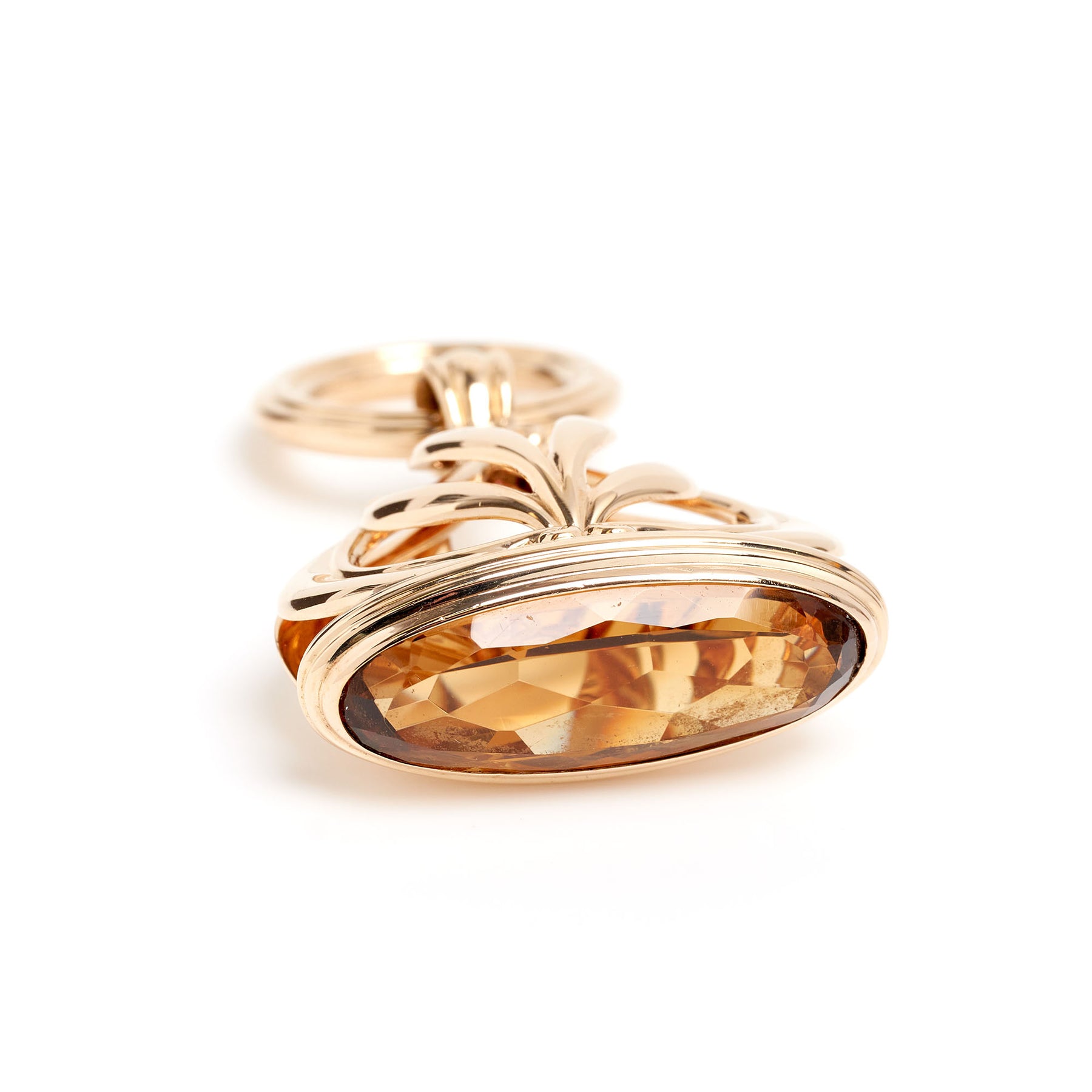 Victorian fob in 14-karat yellow gold featuring 1 oval citrine weighing approximately 8.45 carats.